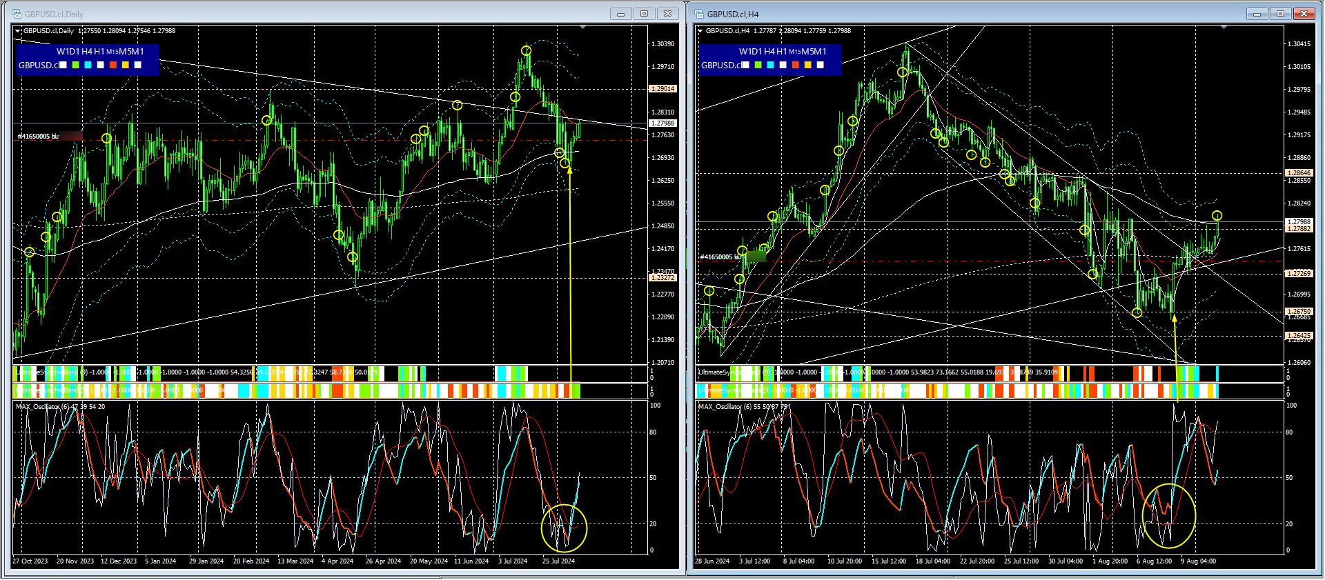 ■大きめの波の転換は、4時間足や日足のMAXオシレーターの天底からの切り返しを狙う