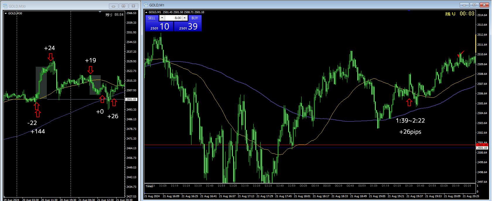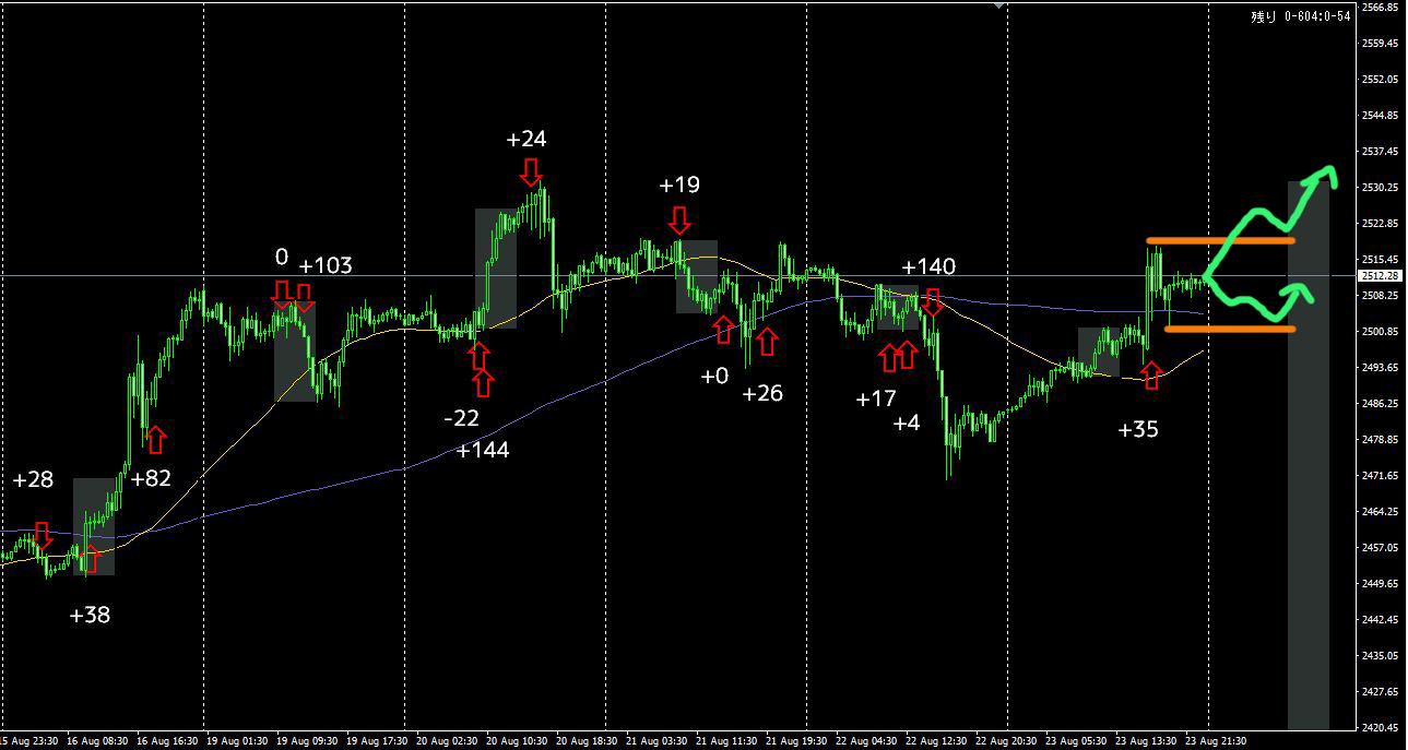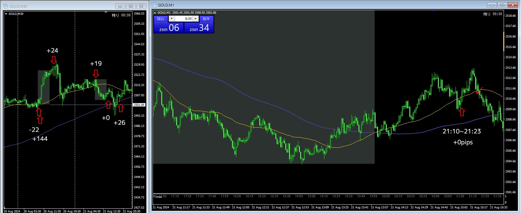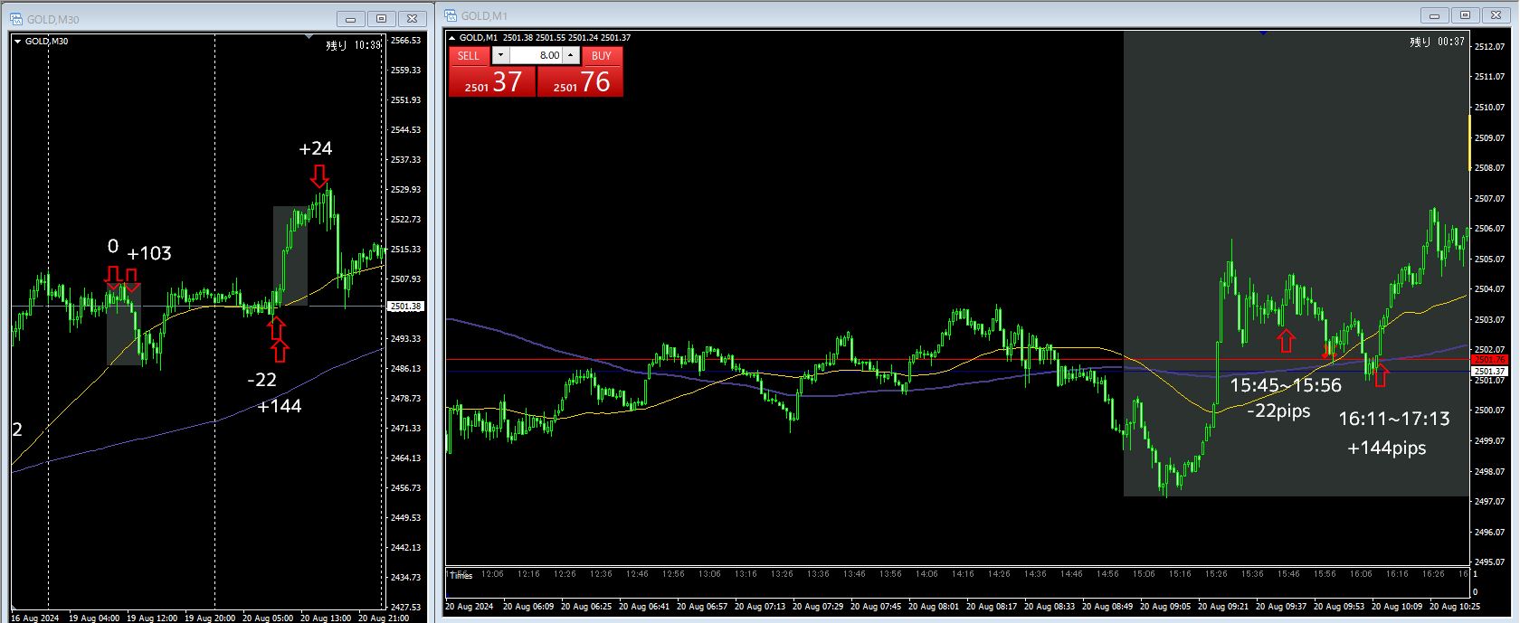 3戦2勝1敗 +146pips (-22 / +144 / +24)