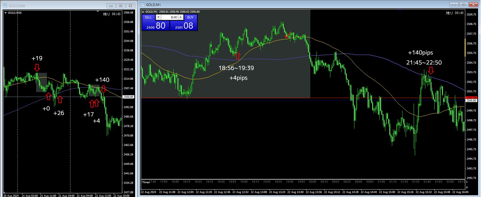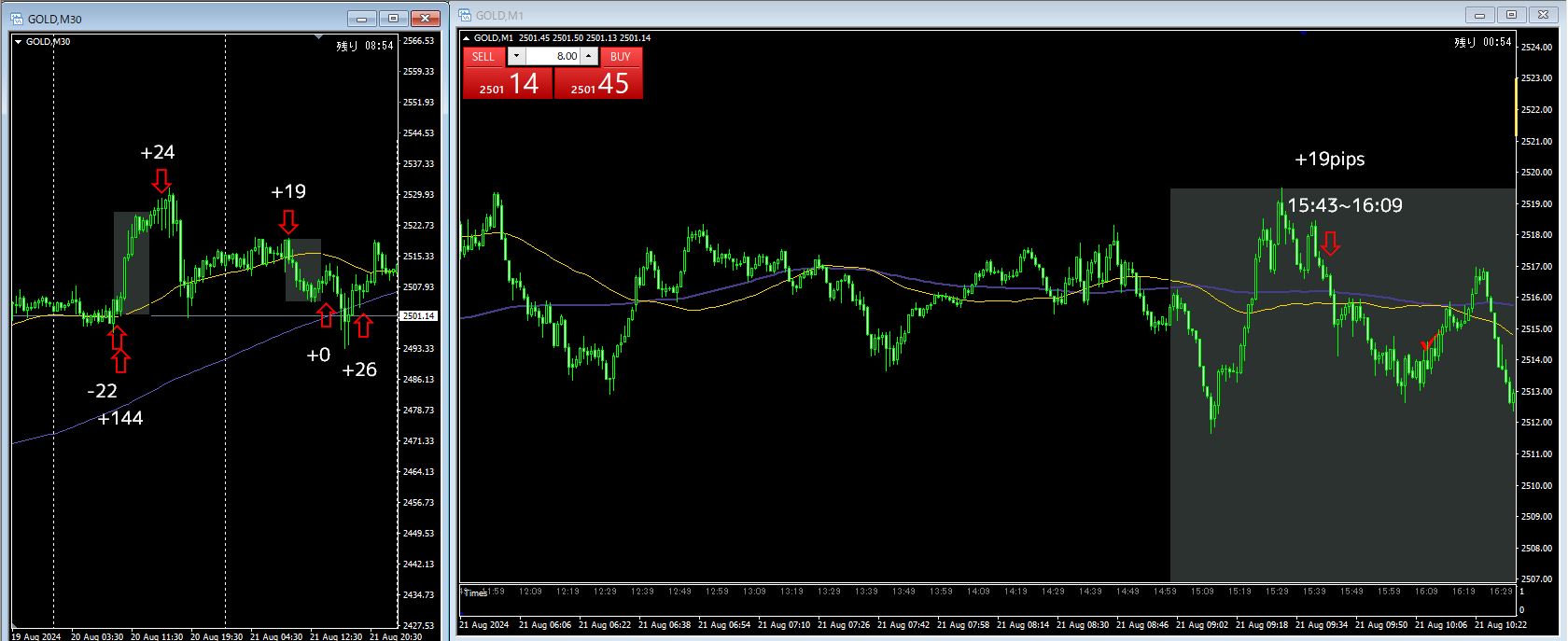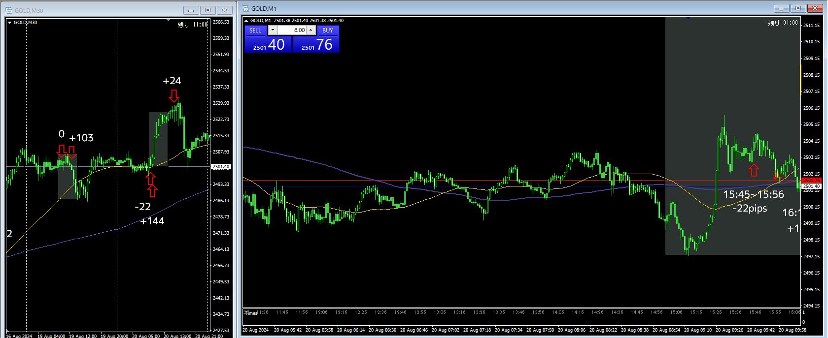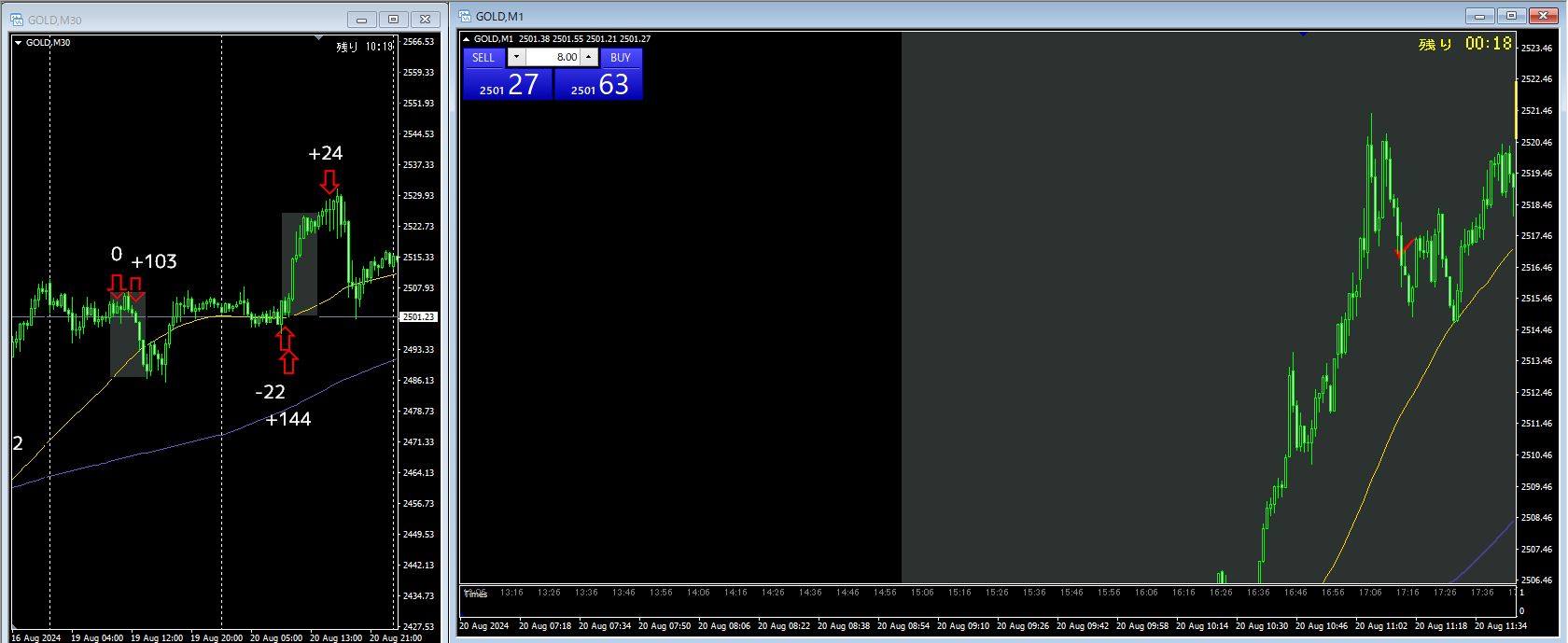 3戦2勝1敗 +146pips (-22 / +144 / +24)