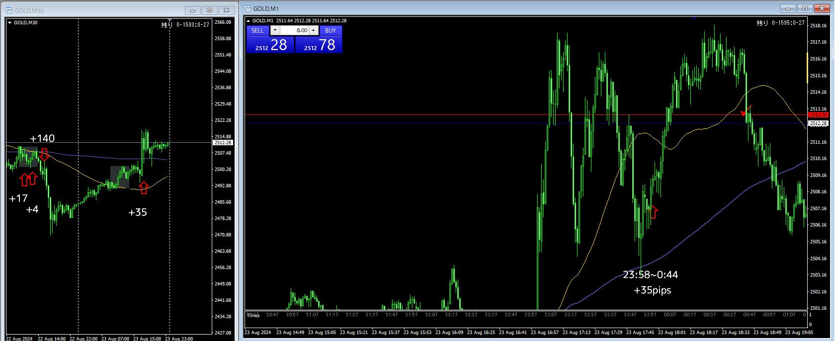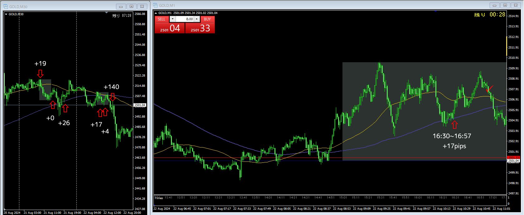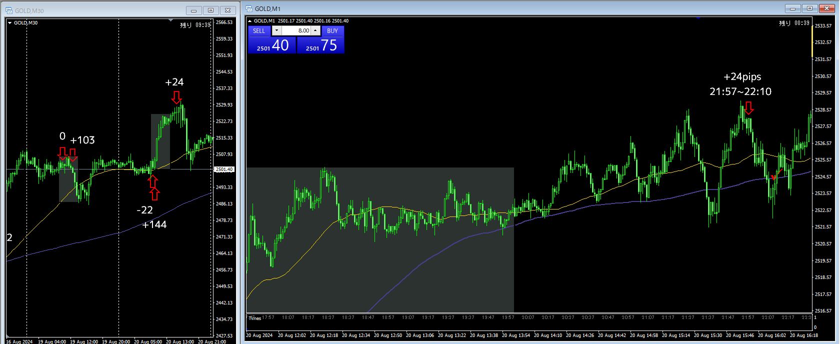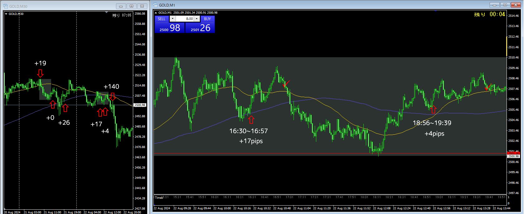 3戦2勝1敗 +146pips (-22 / +144 / +24)