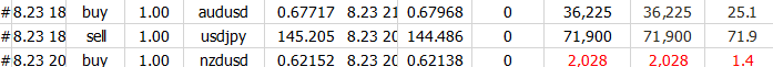昨日のパウエル米FRB議長のジャクソンホール会議での講演を受けてドル売りとなったのを切っ掛けに複数のエントリー&利確を行いました。昨晩だけで約10万円の利益を出しており、現在も優位性の高い通貨のポジションを複数持っています。