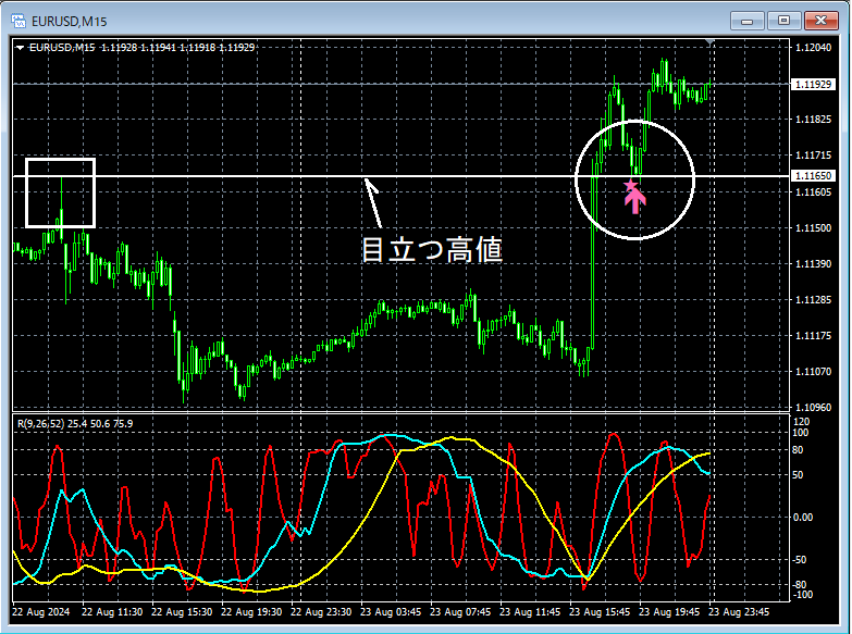 目立つ高値とロールリバーサルとmBDSR(RCI2本フィルター)の押し目買いサイン