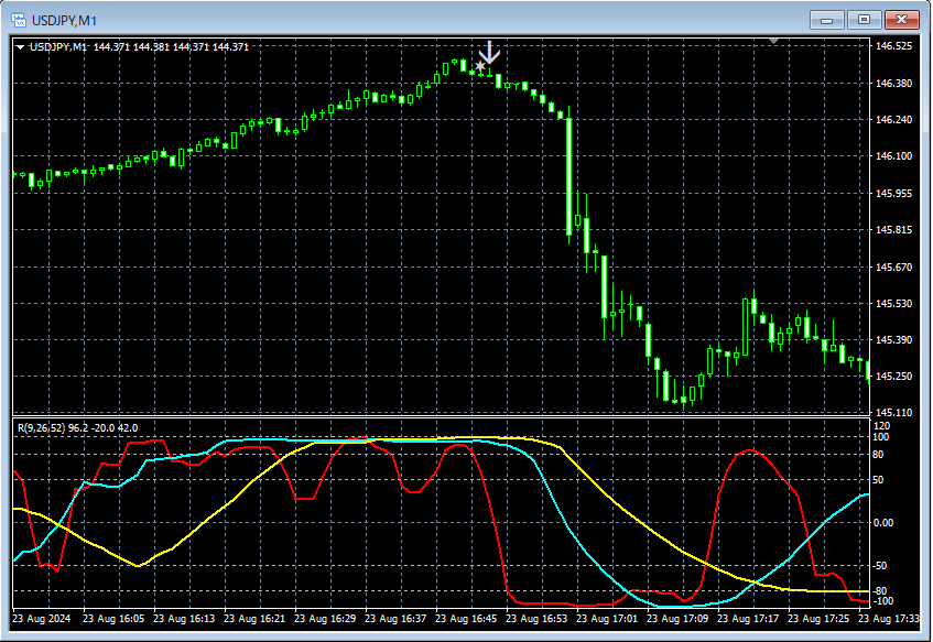 R1R2S2によるドル円攻略 反落の兆候 一昨日(2024年8月23日)のチャートから