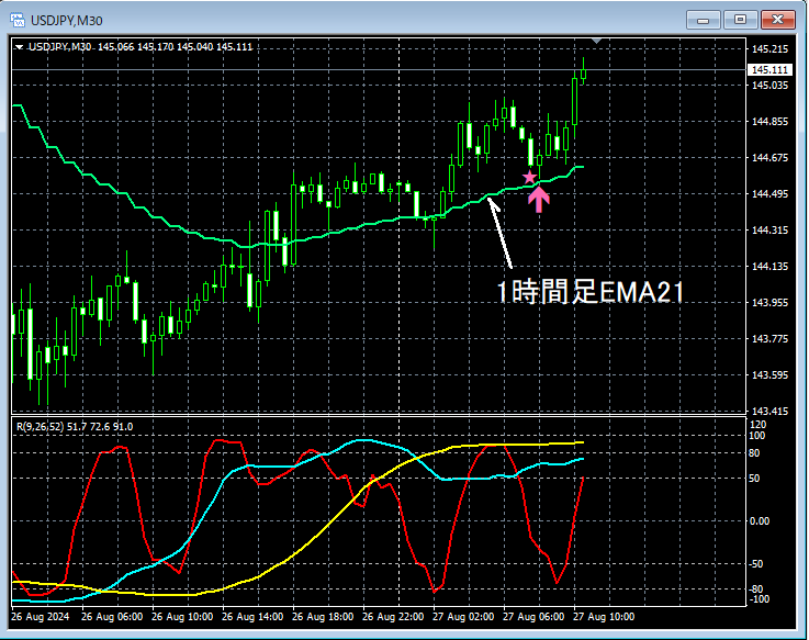 【本日のドル円攻略】重要視している移動平均線における反発とmBDSR(RCI2本フィルター)の押し目買いサイン 2024年8月27日