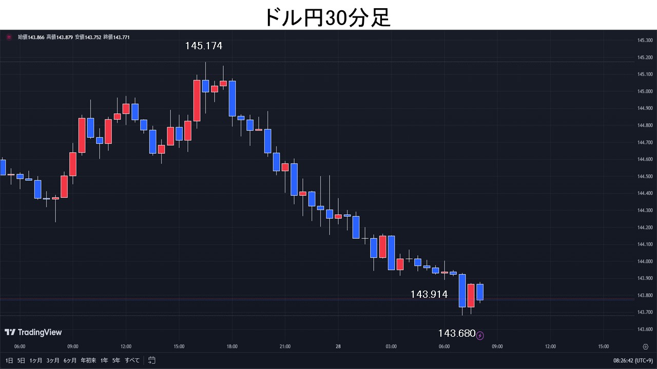 米利下げ観測高まる中、ドル円は145円台まで上昇となるが、その後失速。