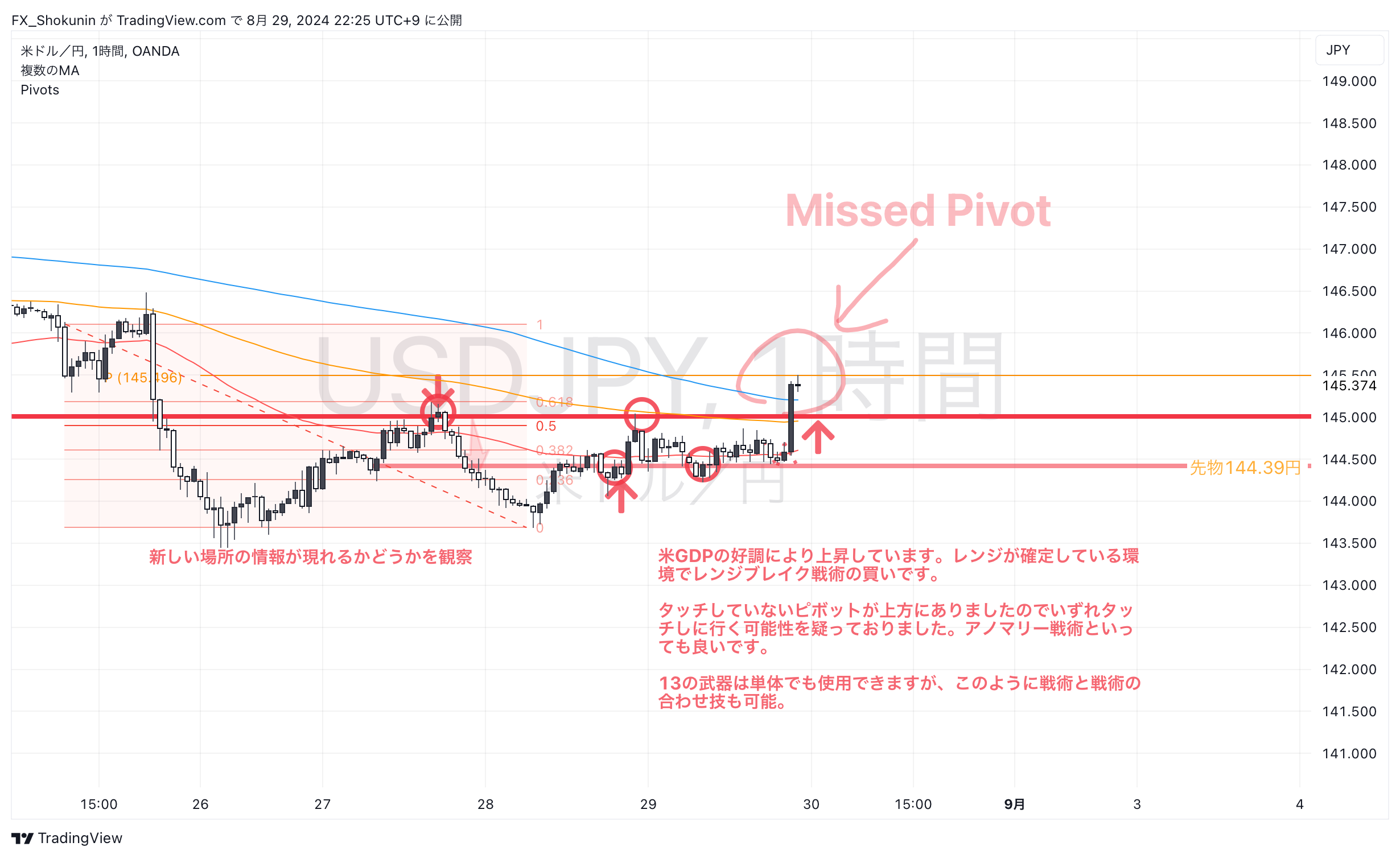 現在のドル円は145.50円のMissed Pivotに向かうアノマリートレード戦術です。