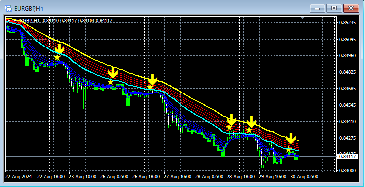 【トレンドを追いかけるなら...】mBDSR(移動平均線フィルター)のサインとGMMA 本日(2024年8月30日)のチャートから