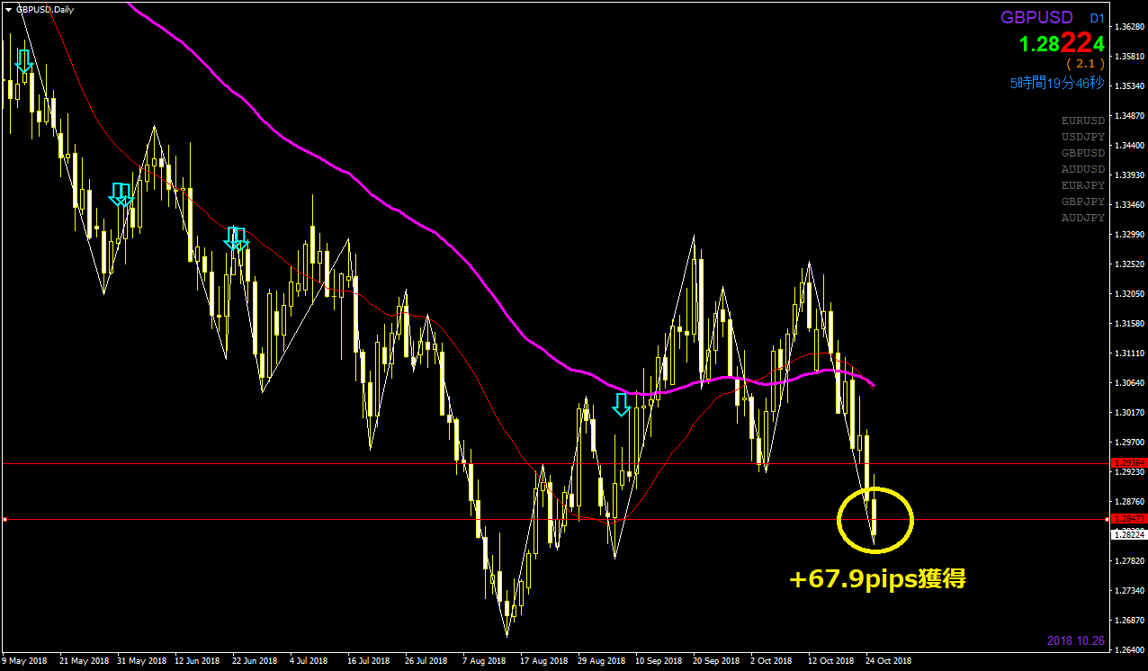 今回は合計20万通貨で、+67.9pips獲得となりました。