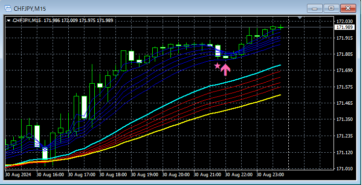【mBDSRのサイン】RCIフィルターと移動平均線フィルターを上手く使う 昨日(2024年8月30日)のチャートから