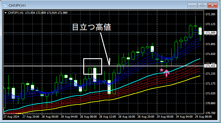 【mBDSR(移動平均線フィルター)の押し目買いサイン】目立つ高値に注目する