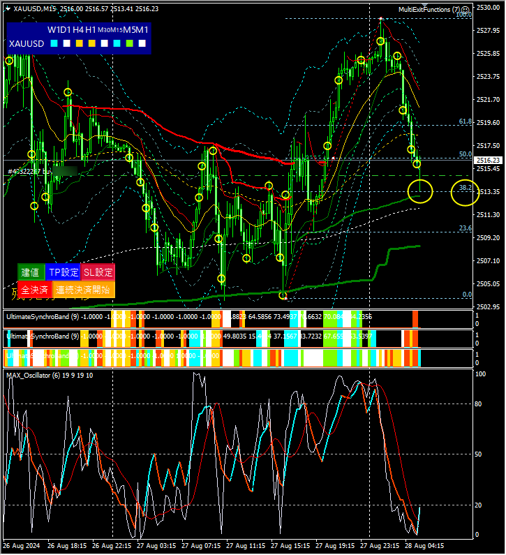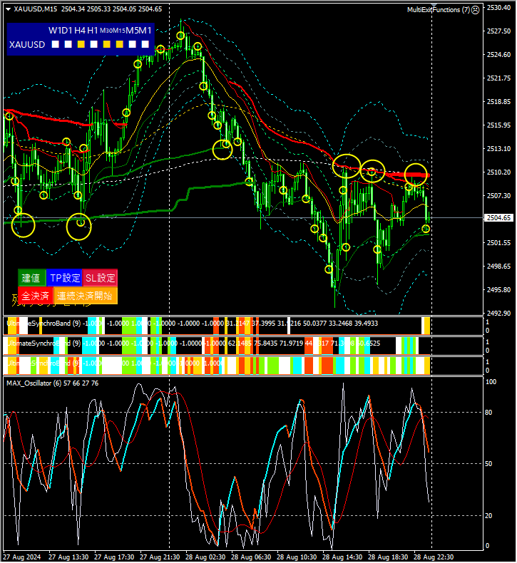 多通貨、複数時間軸の、シンクロバンドの状態を一括で表示します。