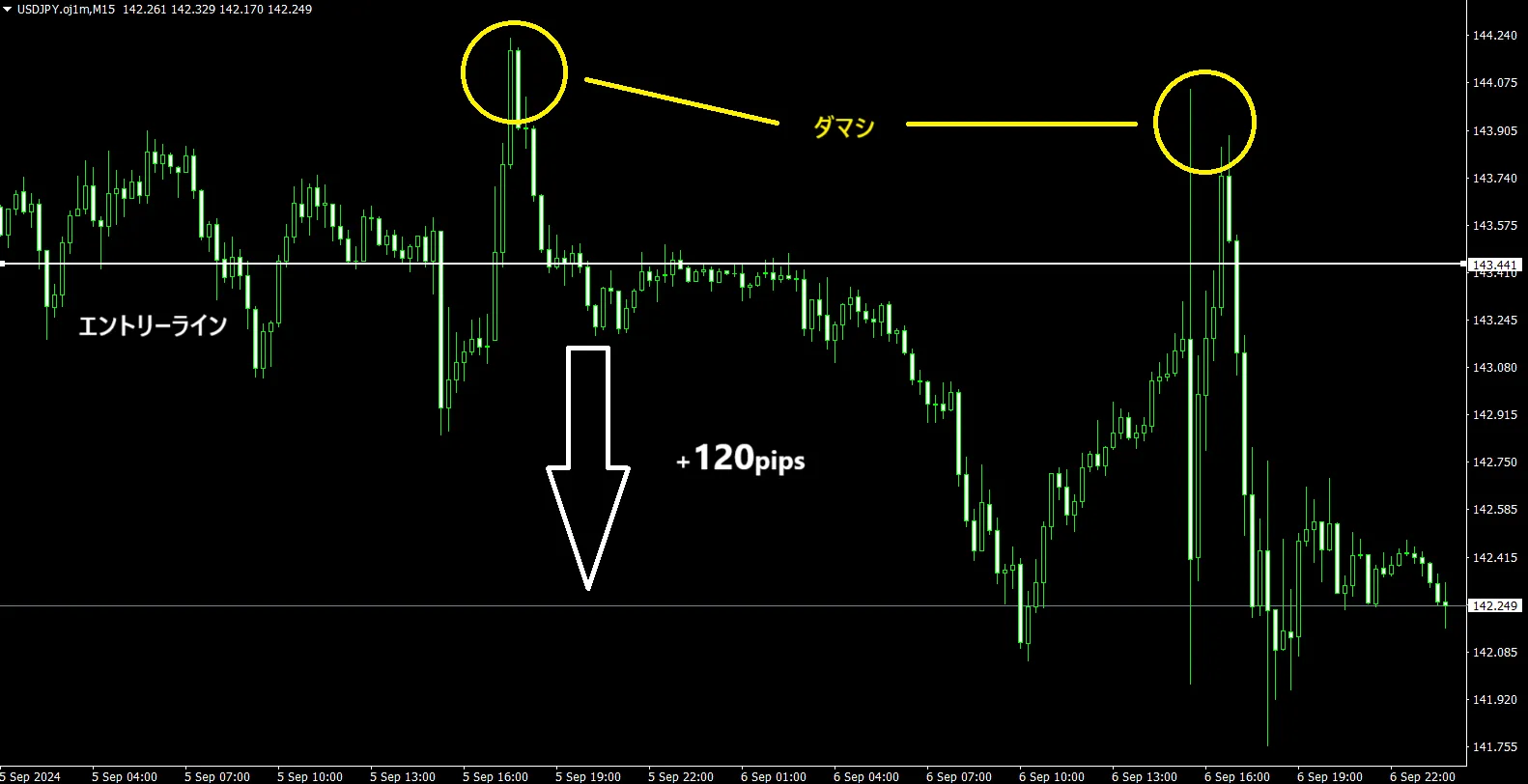 さて、長くなってしまいましたが今回うまくいったトレードを少しお見せしたいと思います。今回の指標発表では短時間に乱高下しており、ダマシにひっかかり損切になった方も多いことかと思われます。