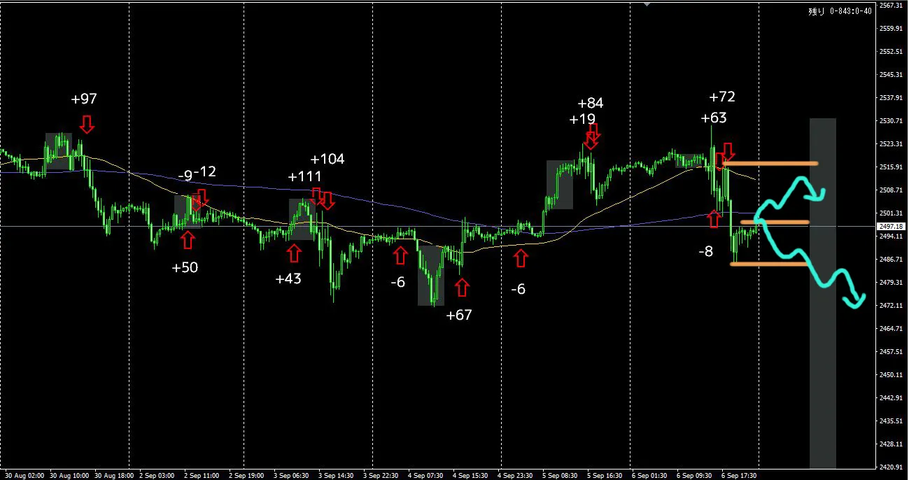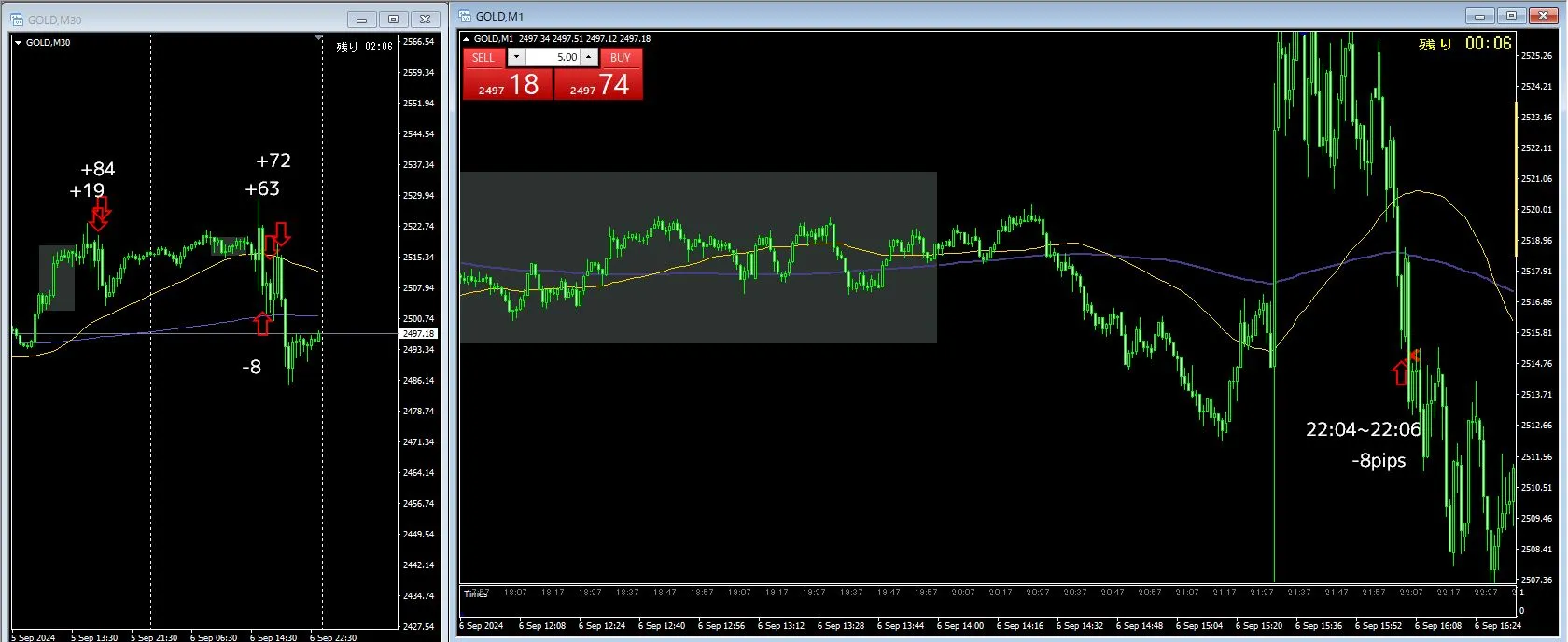 3戦2勝1敗 +127pips(-8 / +63 / +72)