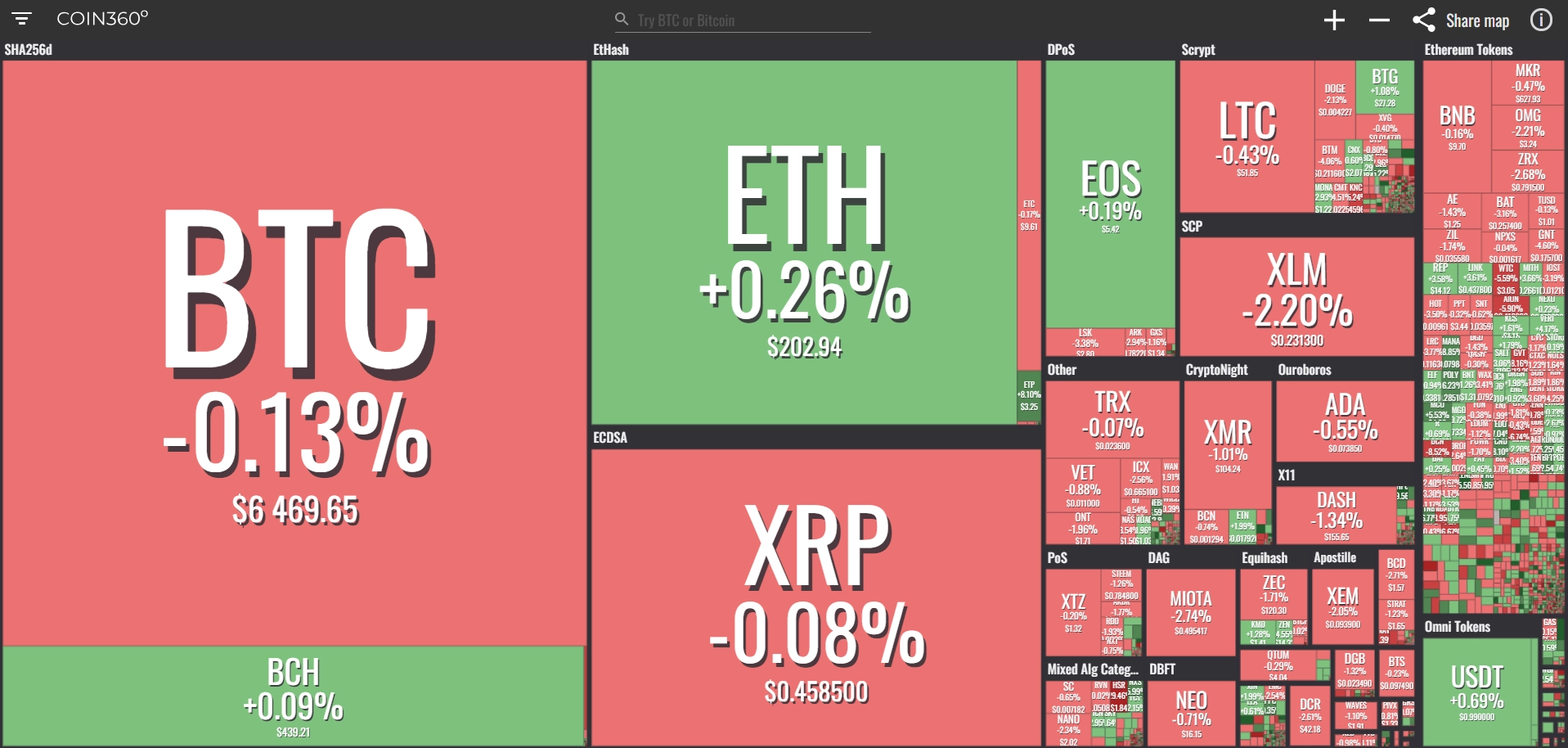 coinmarketcap(コインマーケットキャップ)のサイトから、ドミナンス(各銘柄が仮想通貨全体の時価総額に占めるパーセンテージ)を定点観測していきます。仮想通貨全般が下方向に大きく動き出している相場状況を受け、毎日更新することとし、仮想通貨業界を俯瞰および転換期を早期に発見することを目的とします。