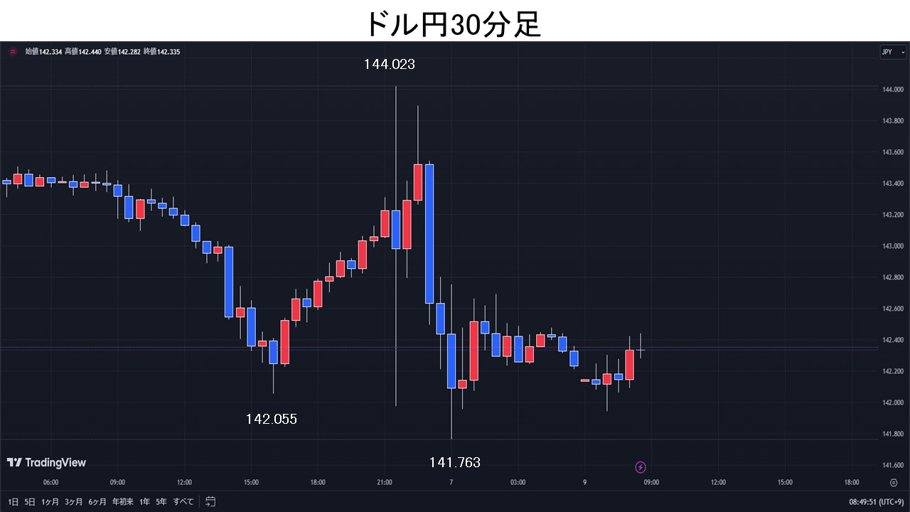 ドル円、8月米雇用統計や要人発言を受け141円台から144円台で乱高下。