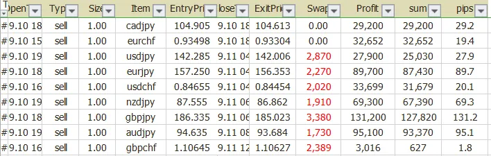 昨日夕方には手法によるブレイクアウトの判定基準を満たしていたので、独自の環境認識をもとに優位性の高い通貨にEAをセットしていました。GBP/CHFは少し攻めすぎたのか、利確ポイントまで達していなかったので帰宅時に手動で決済しました。そのほかに関しては想定した利確ポイントまで無事到達し、非常に大きな利益を得ることができました。