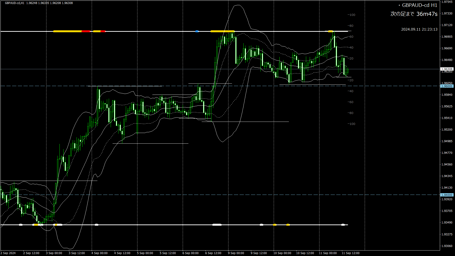 水平線 & ボリンジャーバンド|エクスパンション検出インジケータ