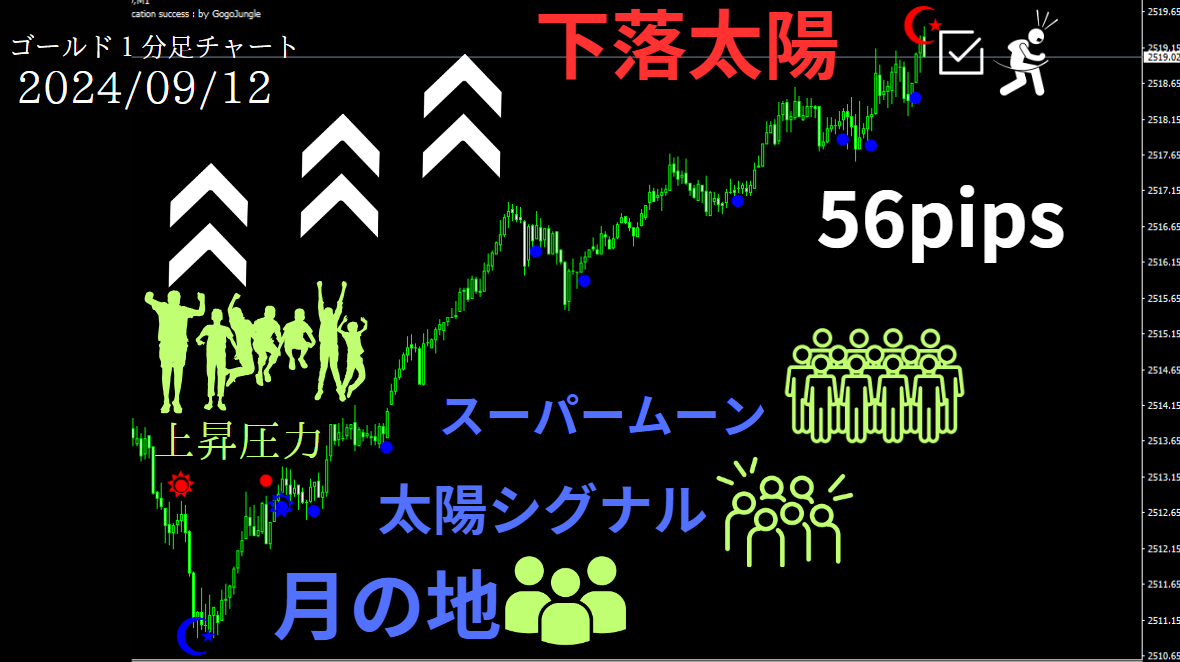 【天地爆速】56pips勝ち!ゴールド1分足チャート最新動向!激熱パターン到来!
