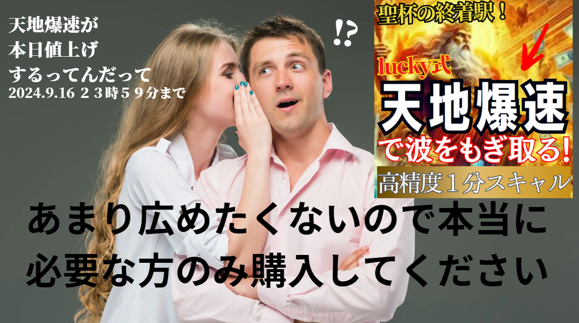「lucky式天地爆速!波をもぎ取る!月と太陽のスキャルピング」本日23時59分までのチャンス!