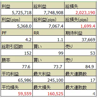 本手法は既存のブレイクアウト手法とは一線を画しており、高勝率かつ高利益をたたき出すごとができています。現在5か月になったフォワード計測は以下の成績になっています。