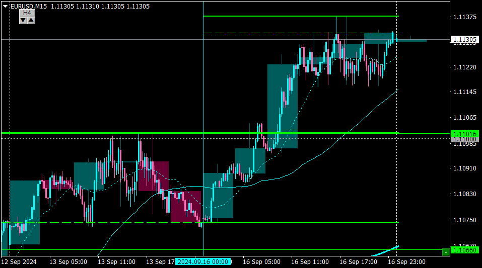 昨日は前週高値を上抜く上昇波が発生したが、H4のチャートにもあるようにH4レベルのチャネルラインがすぐ上にあったためロングのエントリーはしなかった。