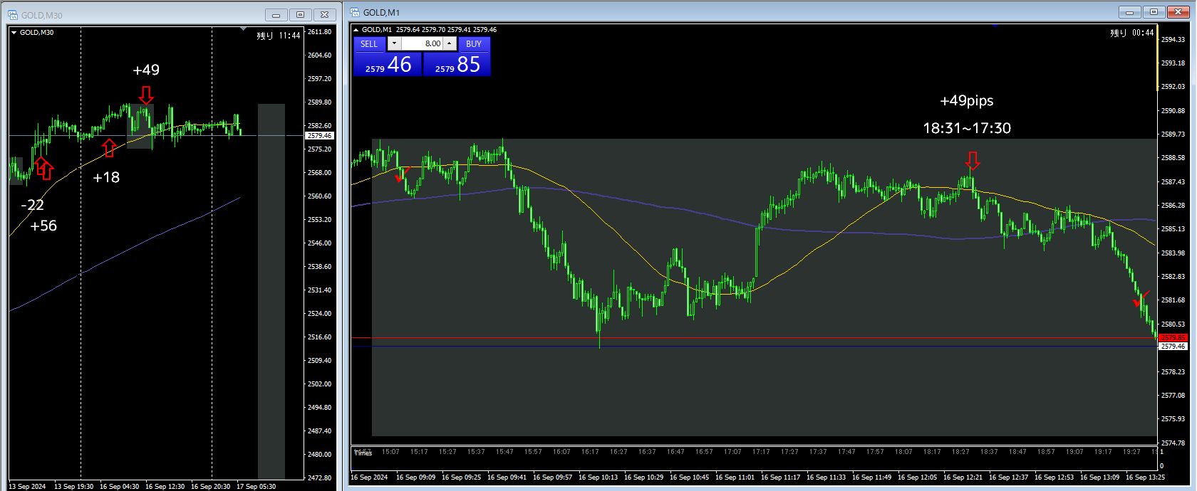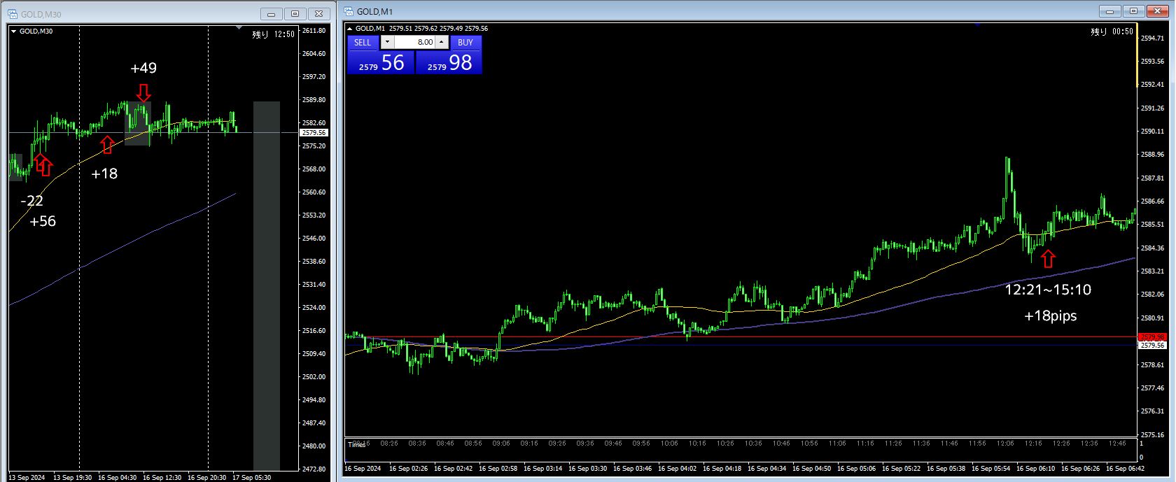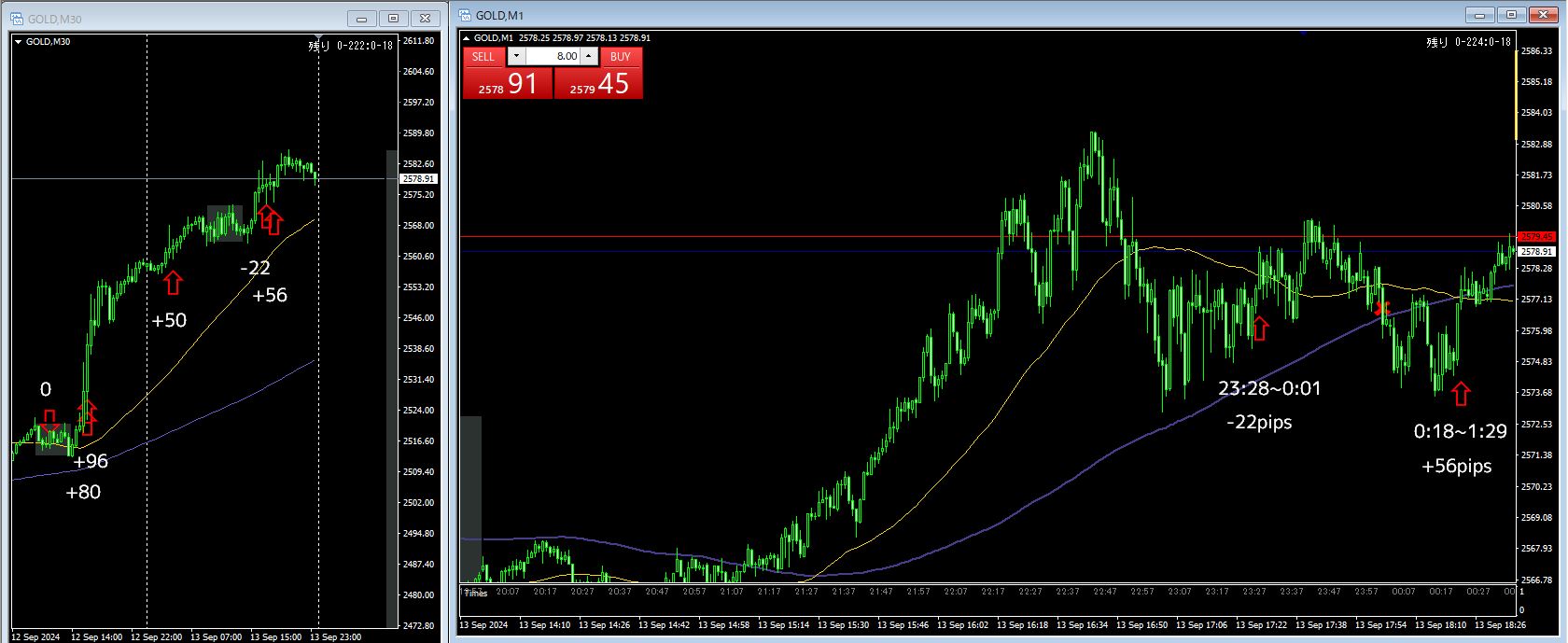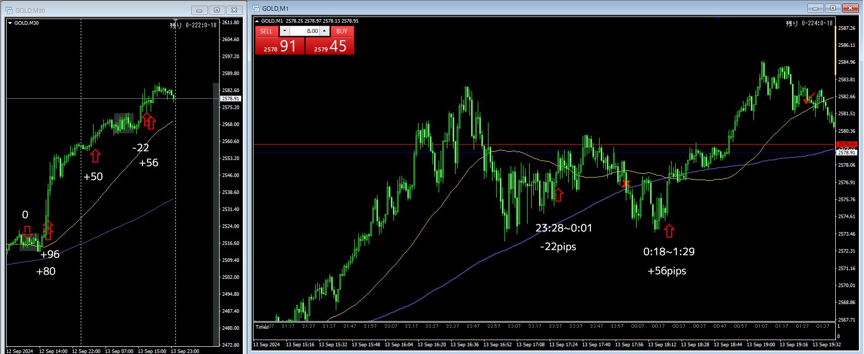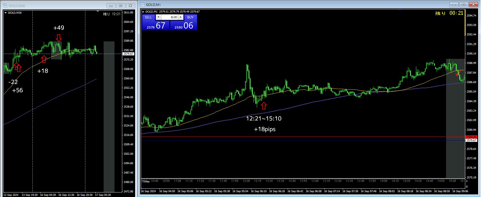2戦2勝 +57pips(+18 / +49)