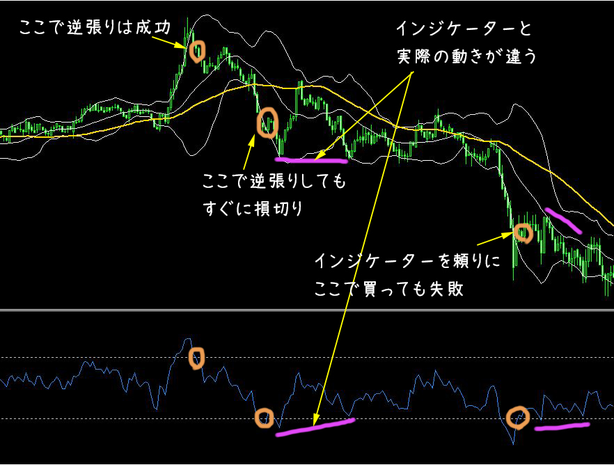 RSIもボリンジャーバンドも同じくローソク足から派生したものなので