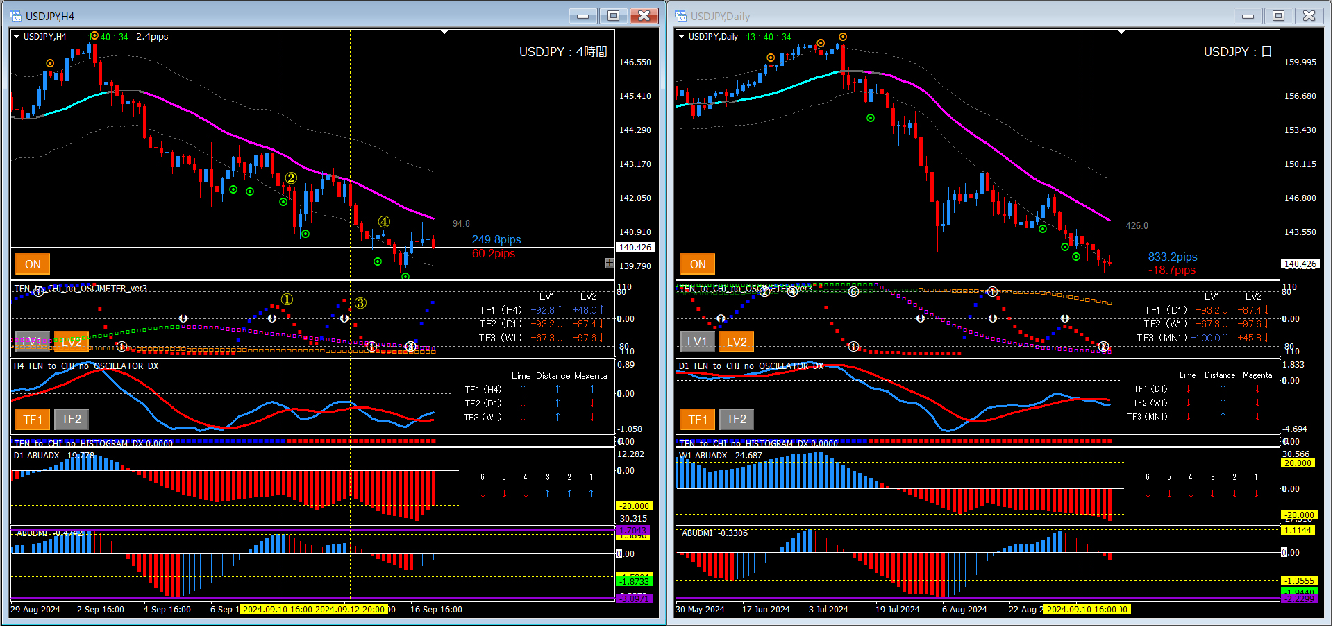 【2024年9月17日】天と地のインジケーターのデイスイング手法を使用した過去検証(ドル円)