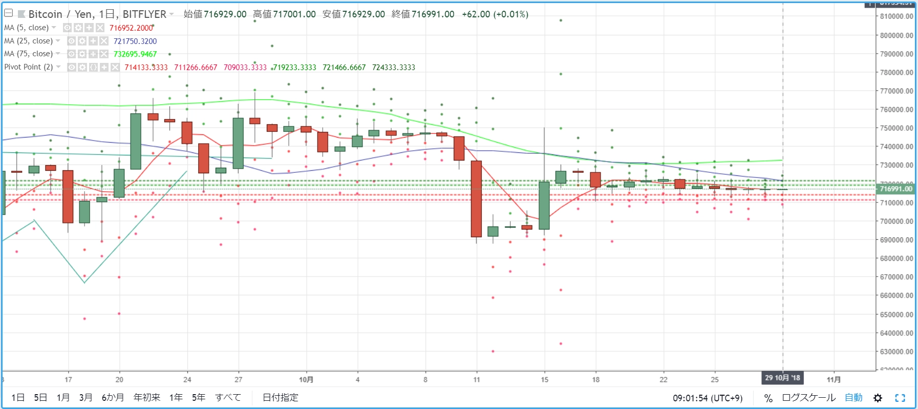 画像は2018年10月30日のキャプチャ。昨日は「緑」で微増していた凪ぎの相場環境でスタートしましたが、日が開けてみると全面「赤」に様変わりしました。ビットコイン、ビットコインキャッシュ、イーサリアム、リップル、ライトコインなど有力どころが総崩れしています。