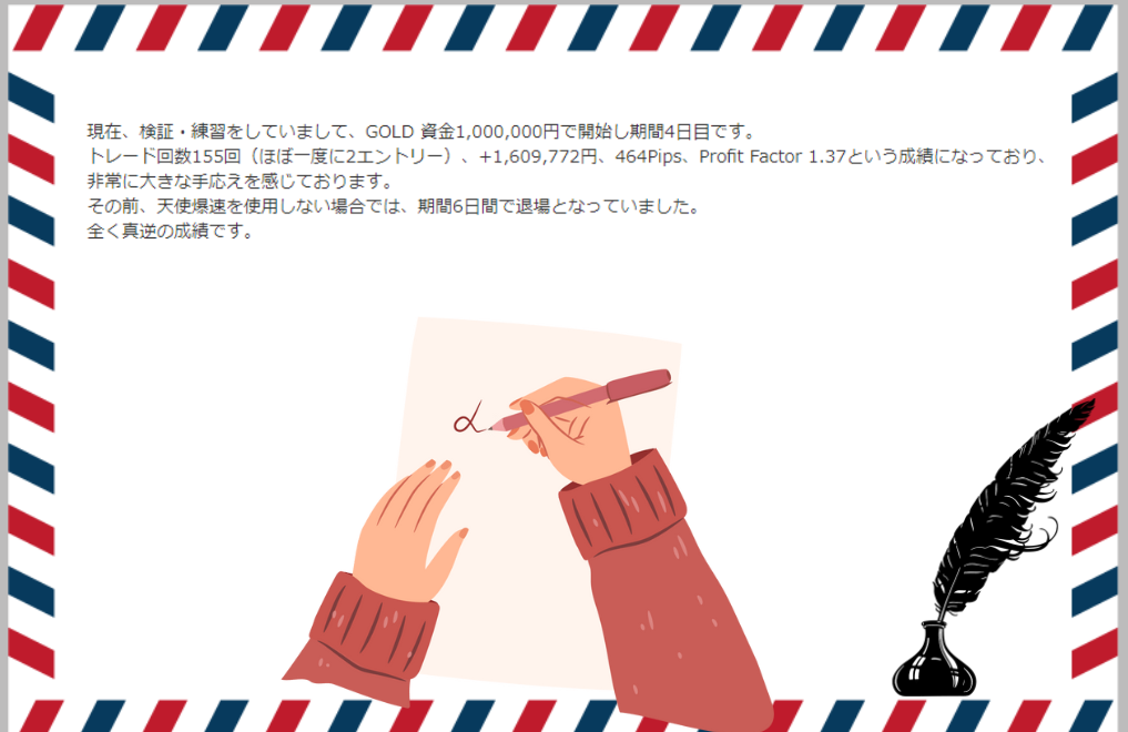 皆さんも、ぜひゴールド以外の通貨ペアで【天地爆速】を試してみてください。