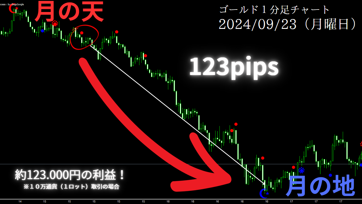 9月23日(月曜日)のゴールド1分足チャートで見事に123pipsをゲットしましたので、その結果をシェアします!