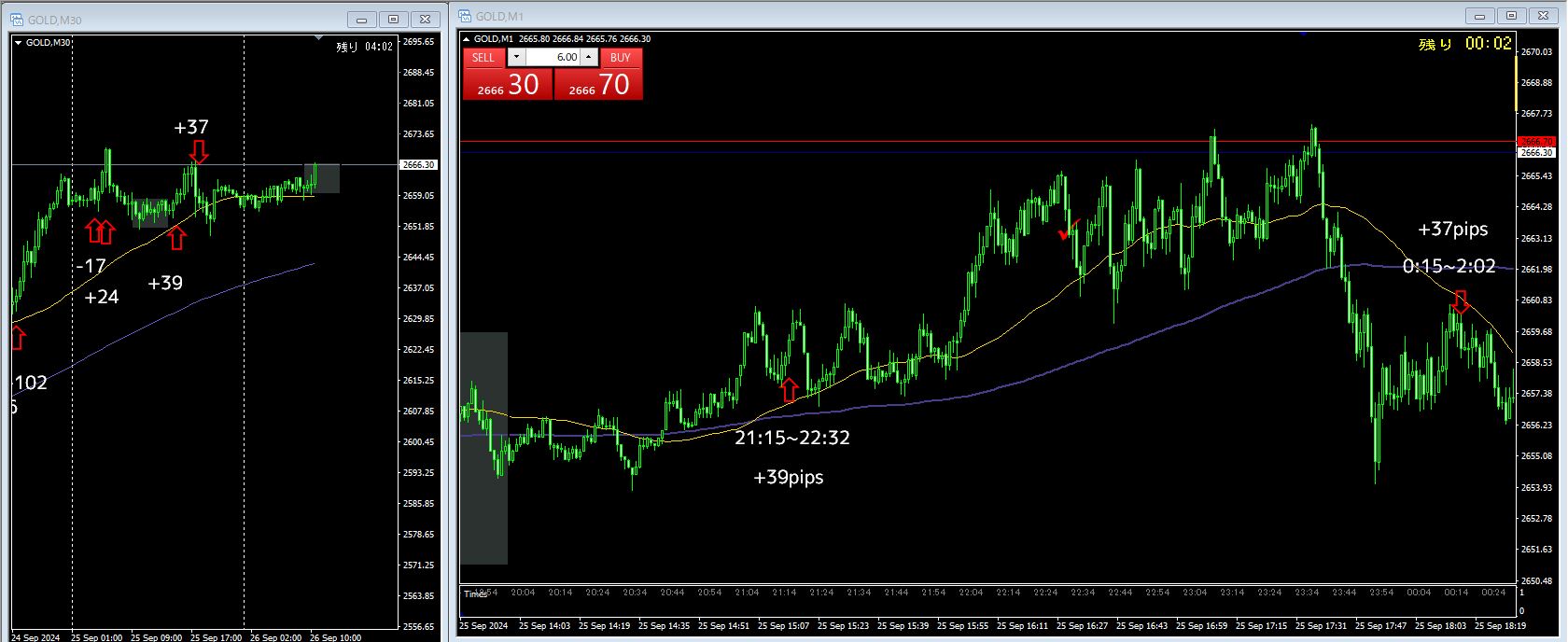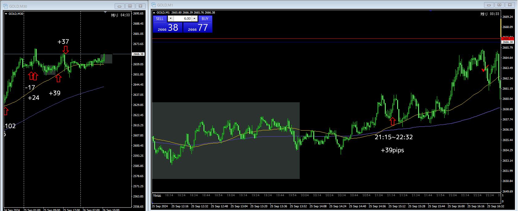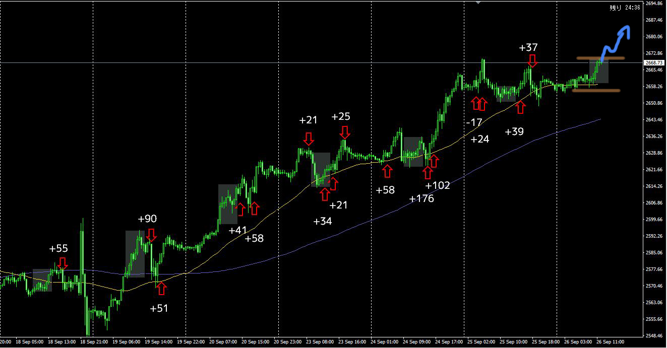 4戦3勝1敗 +83pips(-17 / +24 / +39 / +37)