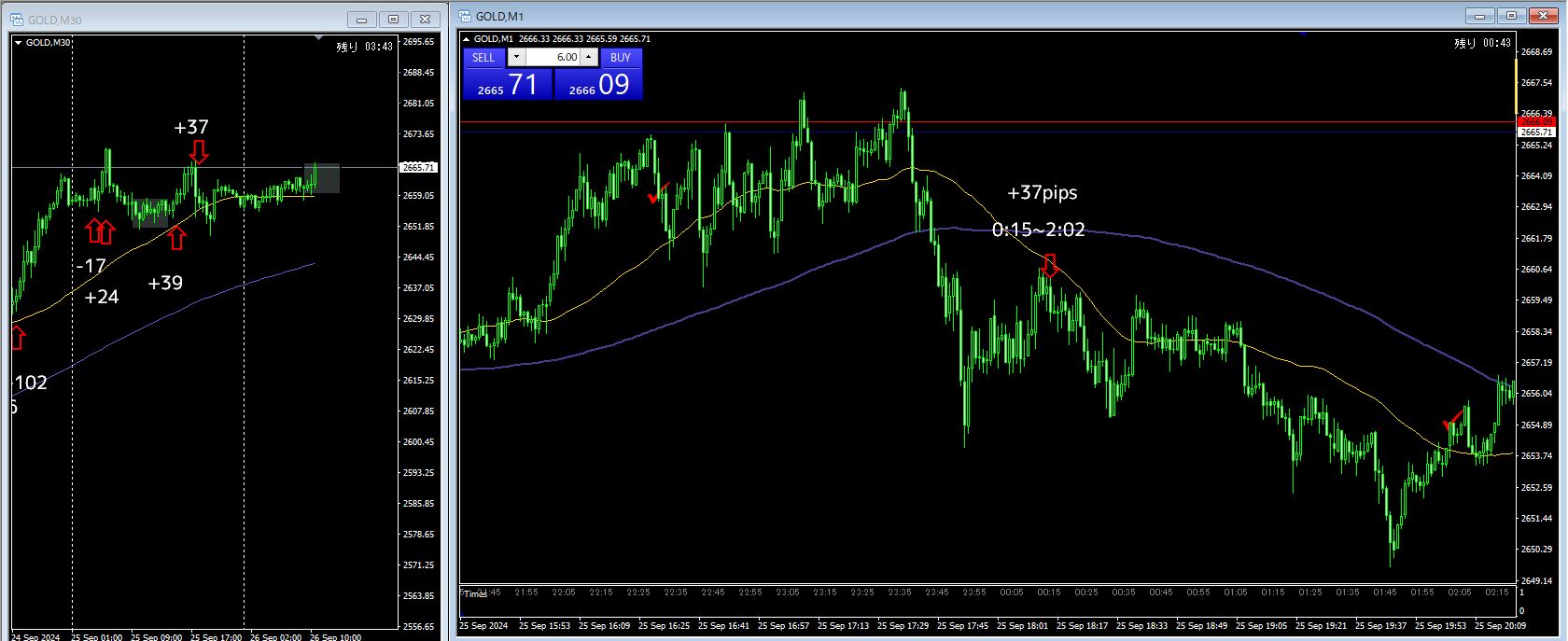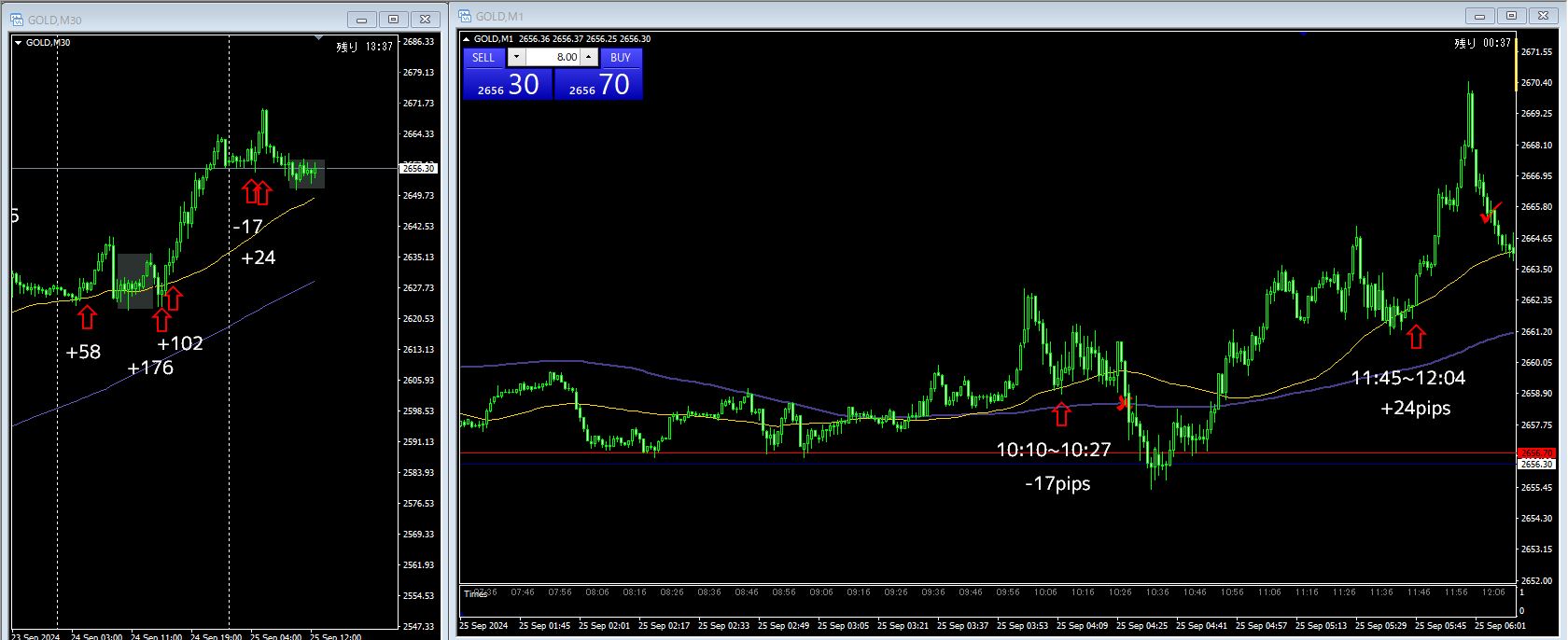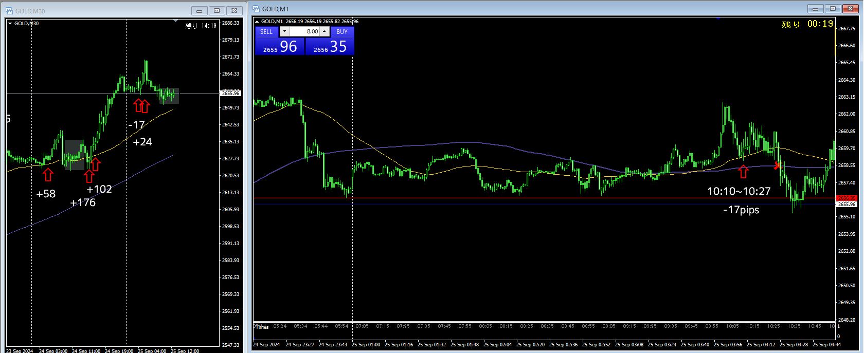 4戦3勝1敗 +83pips(-17 / +24 / +39 / +37)