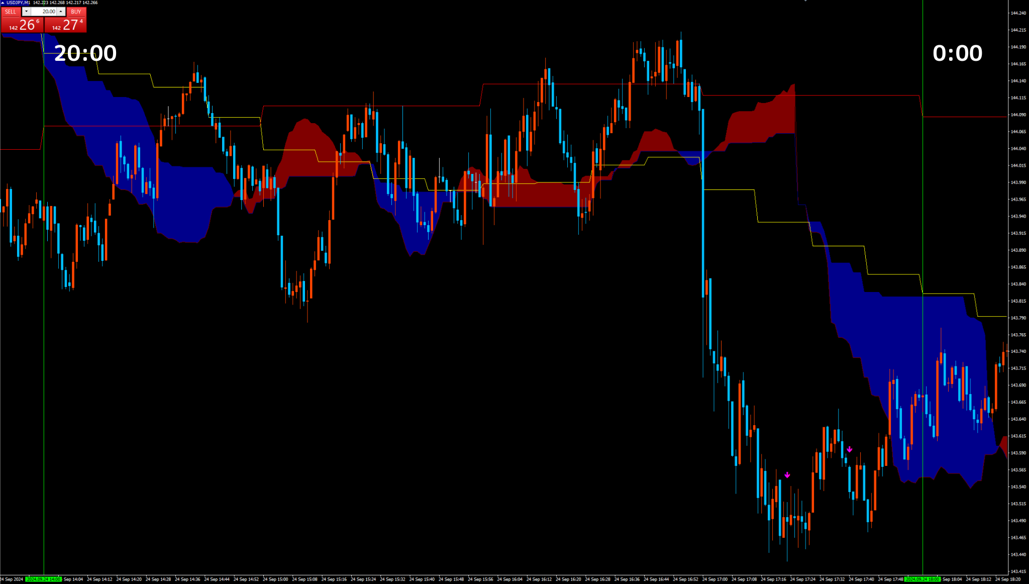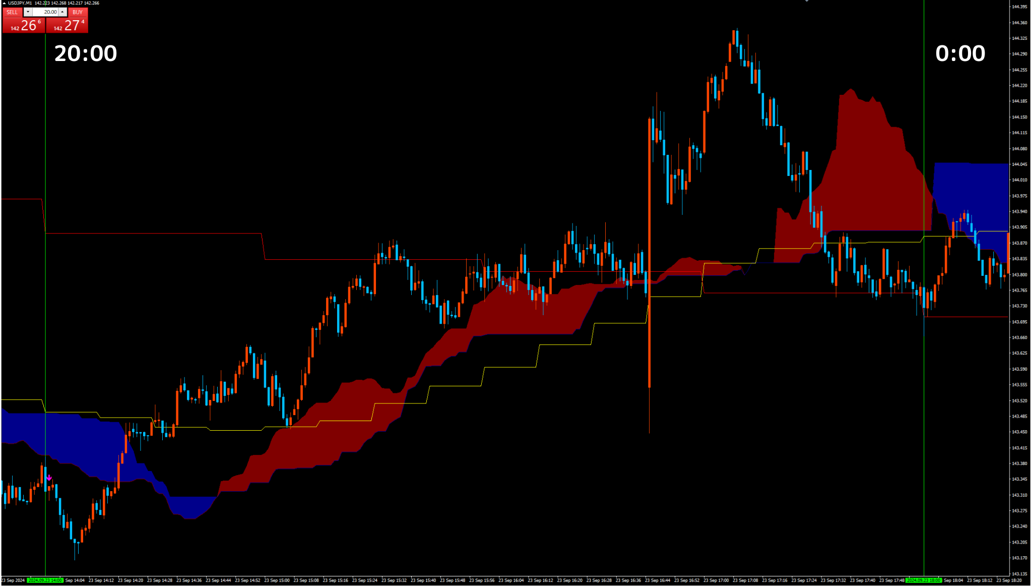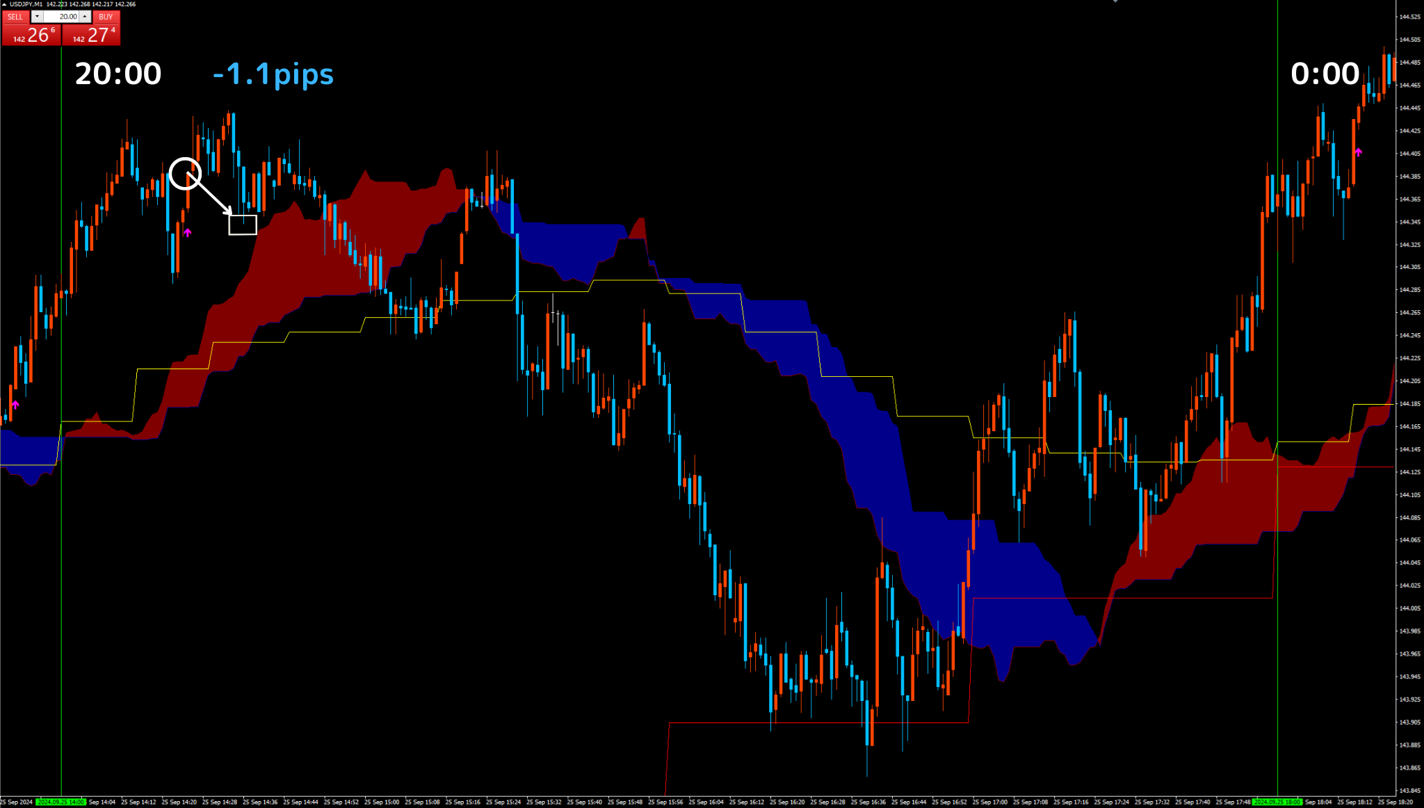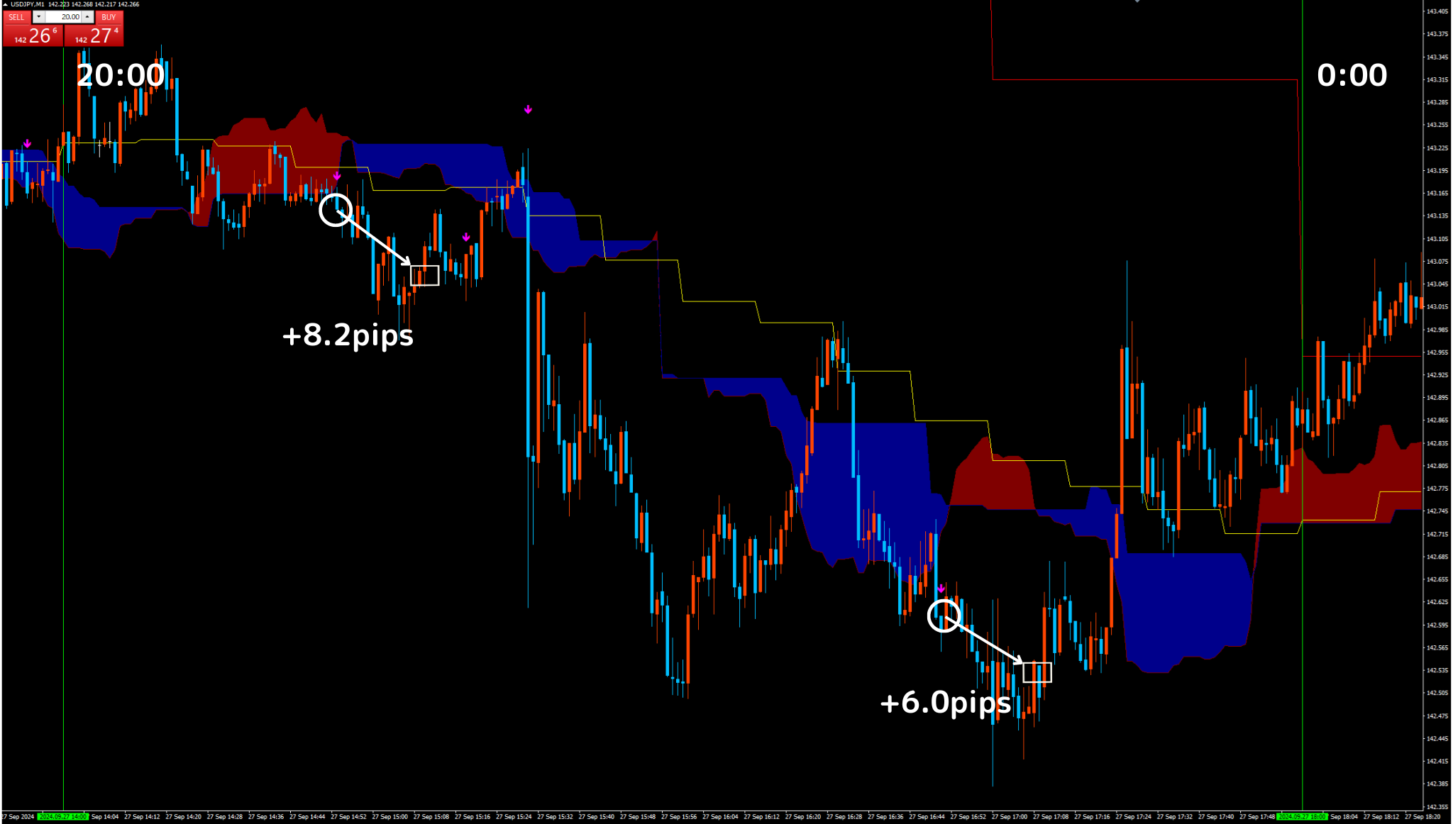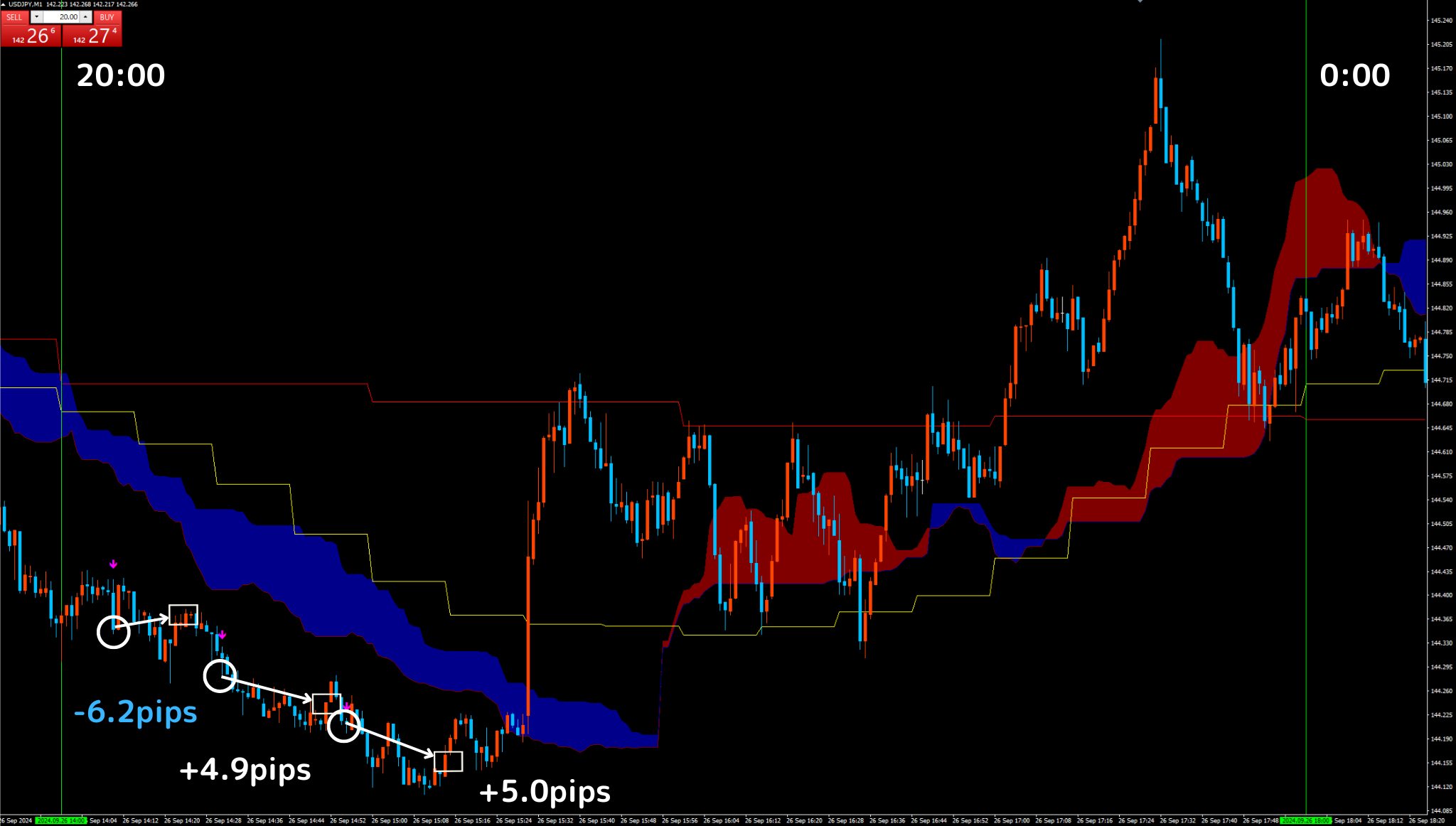 一週間(9/23~9/27)のNYタイム前からのUSD/JPYにおける、