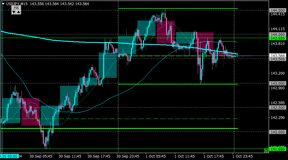 昨日は144.50での戻り目を作るのを待っていたが、二番天井を作る前に急落してしまったのでエントリーできず。