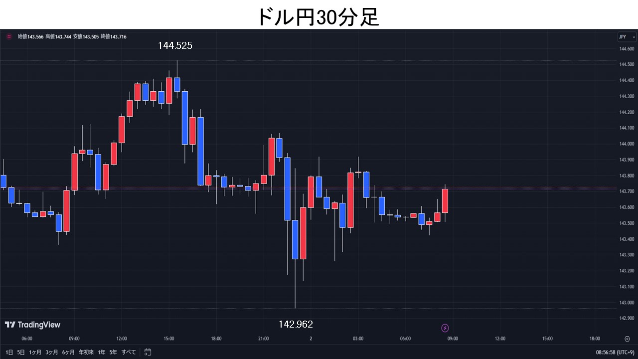 東京時間、ドル円は、9/19-20日開催分の日銀金融政策決定会合における主な意見で、利上げを急がない姿勢が確認されると、一時144.52円まで上昇。欧州時間、米10年債利回りが低下に転じるとドル円は143円台後半へ失速。NY時間、石破首相が1日夜、首相就任後初めての記者会見で「デフレ脱却の実現に向けて金融緩和の基本的な基調は維持されるべき」との考えを表明すると、円売りドル買いが先行し、ドル円は144.07円まで上昇。その後、「イランはイスラエルへの弾道ミサイル攻撃を準備している」との報道が伝わると、中東の地政学リスクから、米10年債利回りが大幅に低下し、リスク回避の円買いからドル円は一時142.96円まで下落。その後は143円台半ばから後半でのもみ合い。