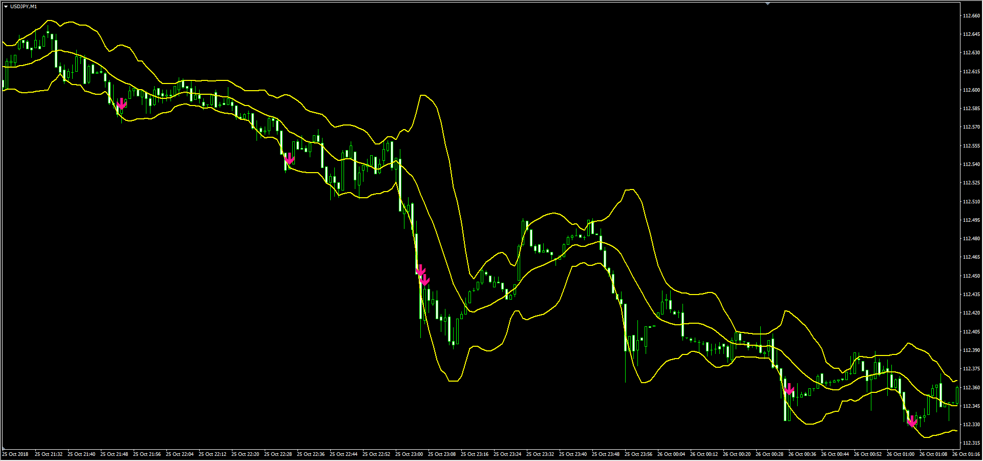 売りであれば連続で-2σを超えて確定したタイミング