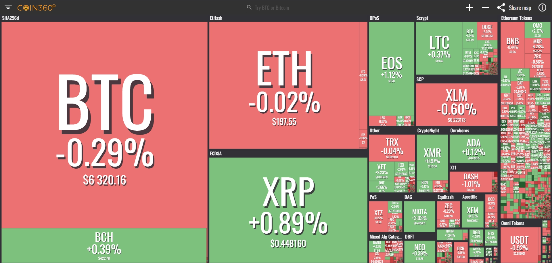 coinmarketcap(コインマーケットキャップ)のサイトから、ドミナンス(各銘柄が仮想通貨全体の時価総額に占めるパーセンテージ)を定点観測していきます。仮想通貨全般が下方向に大きく動き出している相場状況を受け、毎日更新することとし、仮想通貨業界を俯瞰および転換期を早期に発見することを目的とします。