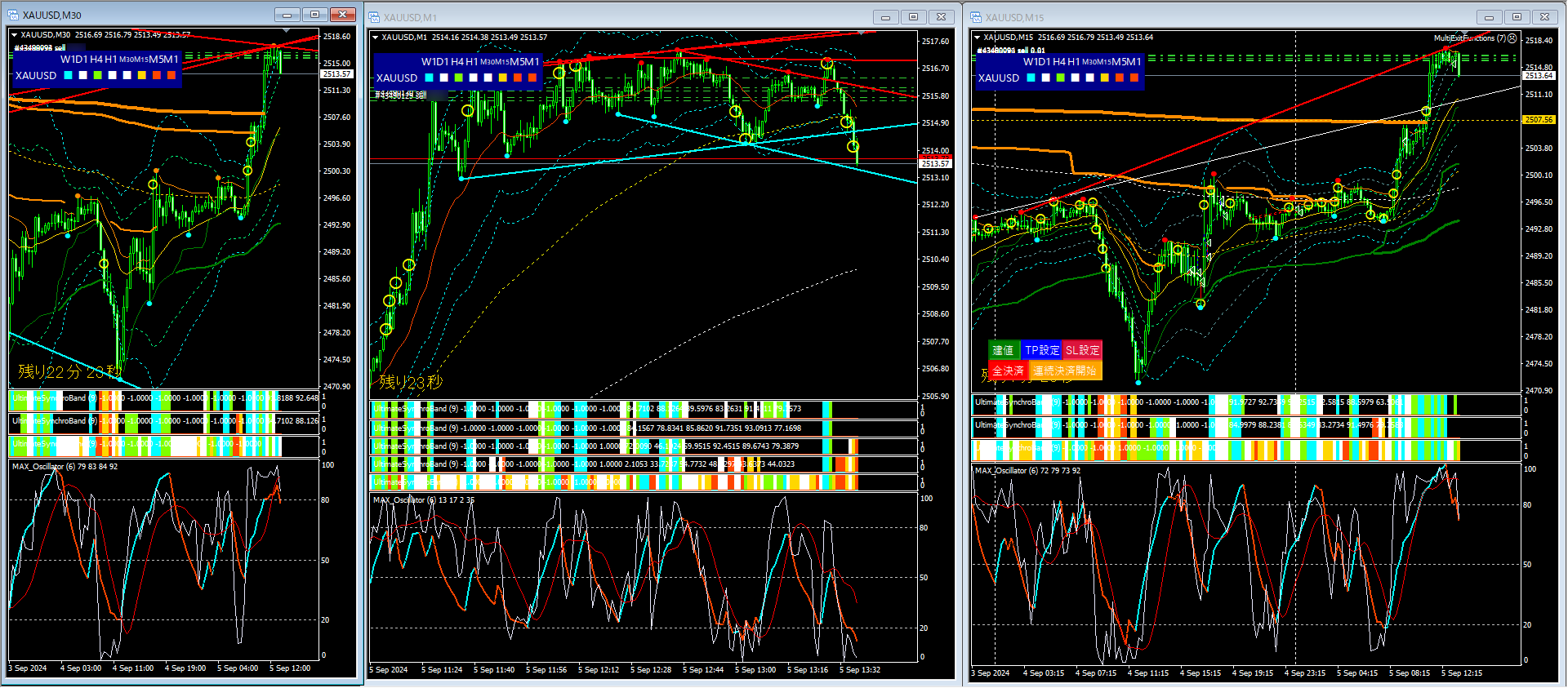 多通貨、複数時間軸の、シンクロバンドの状態を一括で表示します。
