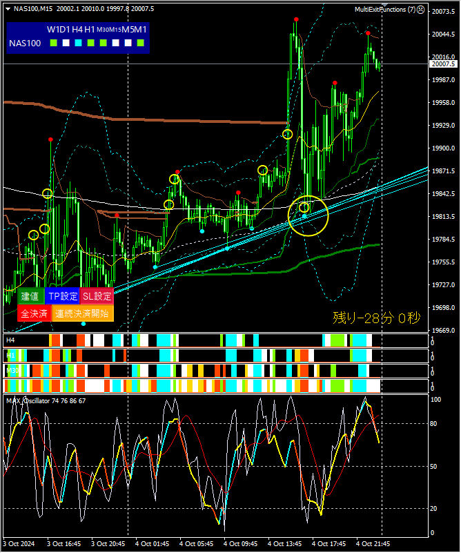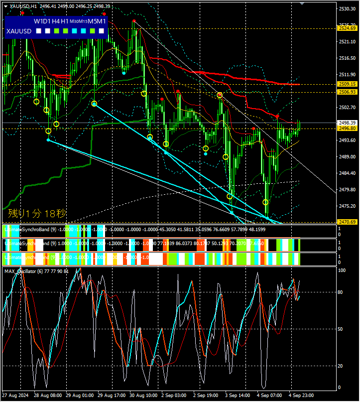 ※30分、1時間足も整合した状態で、シンクロバンドも下降シンクロを示しています。