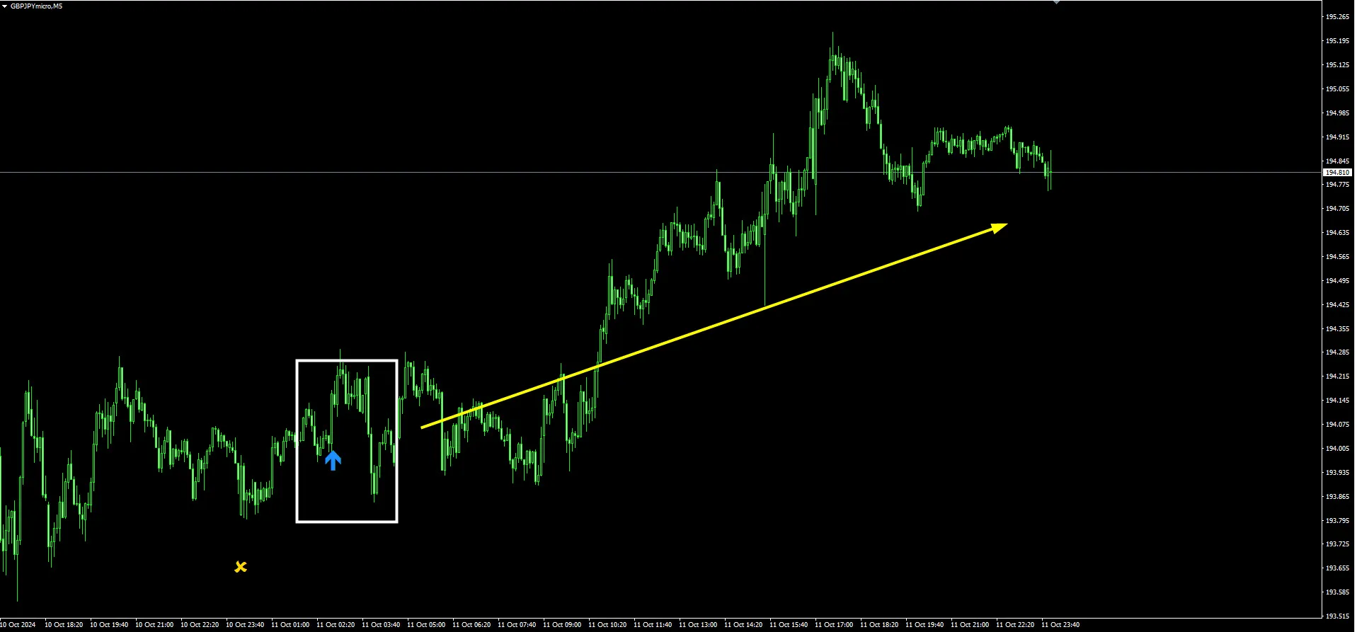 ポンド円5分 10月12日朝6時 未だ決済サインは出ていない 来週に持ち越し 爆益サイン『ハイパーアロー』