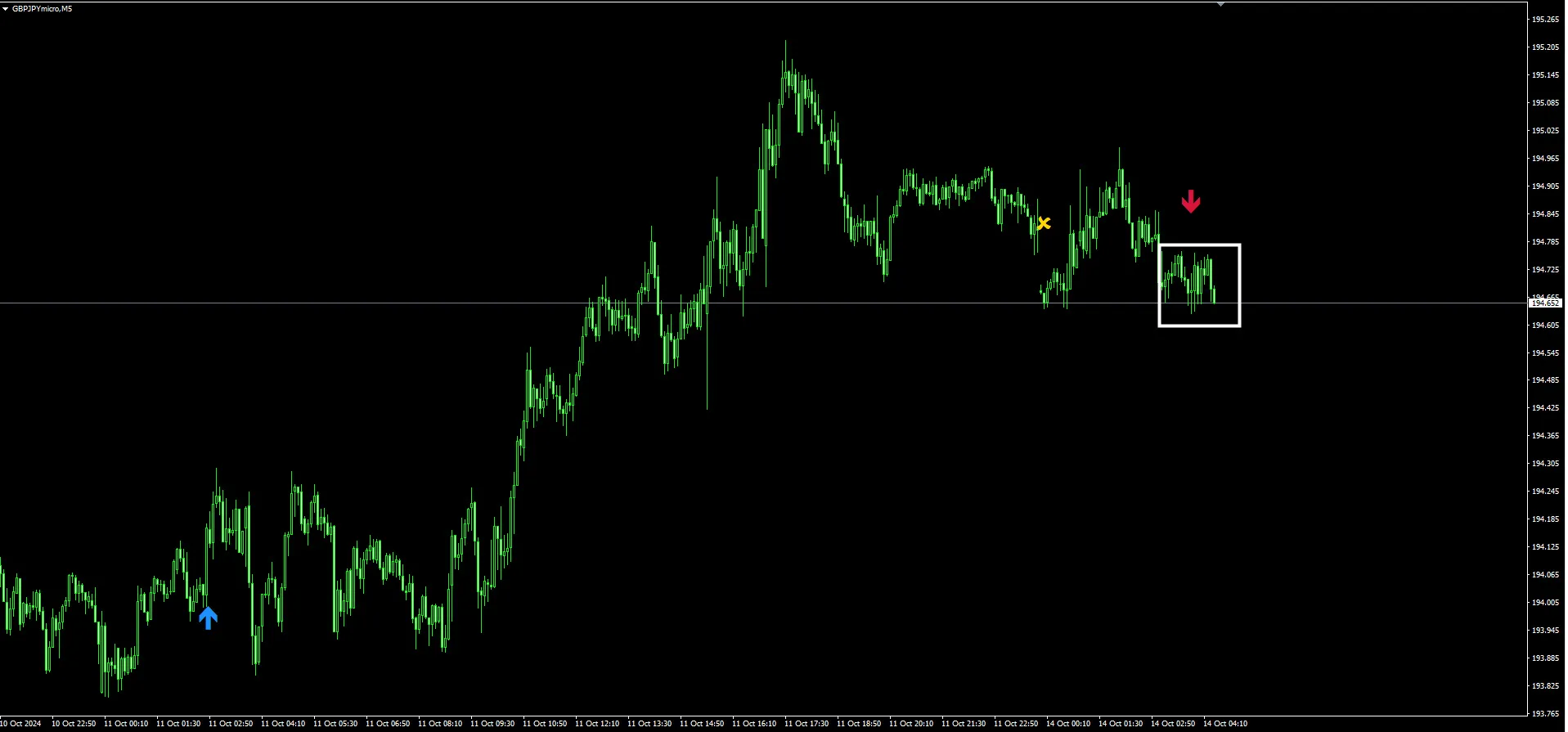 ポンド円5分 10月14日 10時頃 売りエントリーサインが点灯!