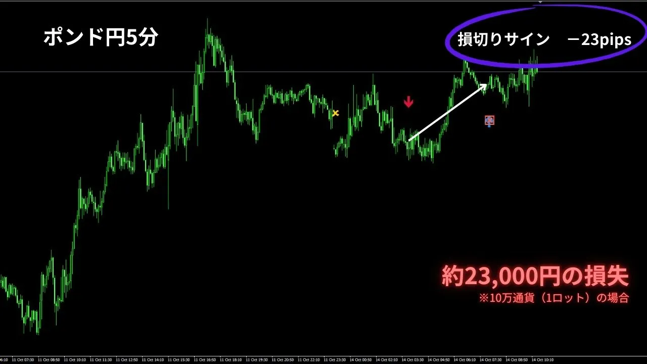 ポンド円5分 10月14日 14時頃 売りの損切りサインが点灯!