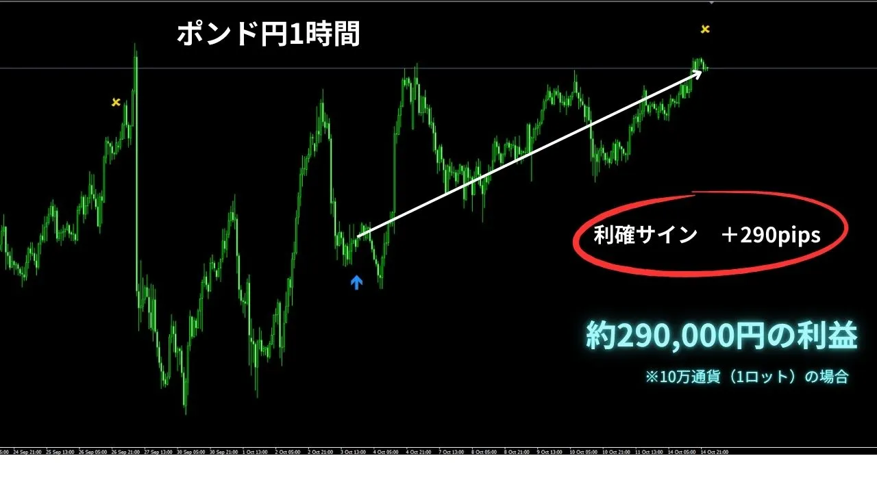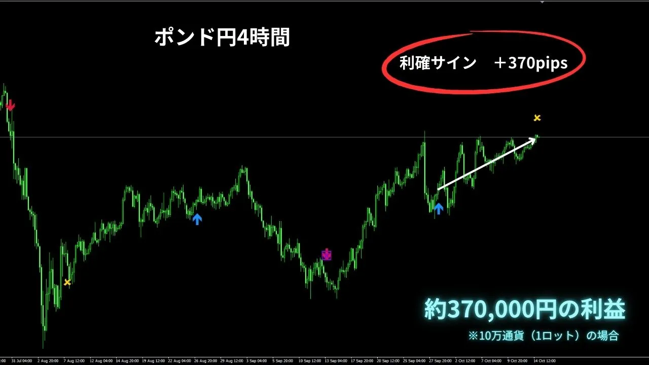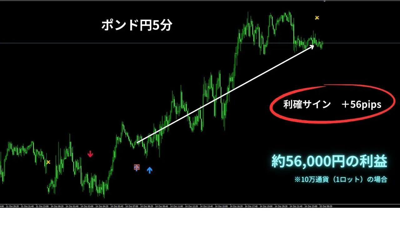ポンド円4時間・1時間・5分 10月15日 6時頃 利確サインが点灯! 爆益サイン『ハイパーアロー』