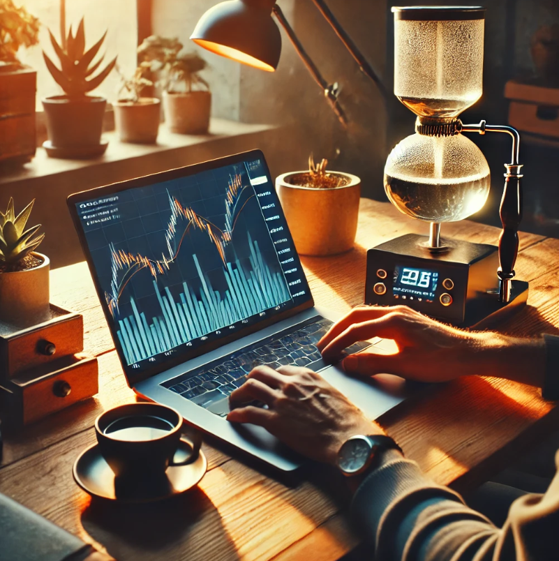 香り高い一杯を楽しみつつ、今日のトレード戦略を練っていきます。