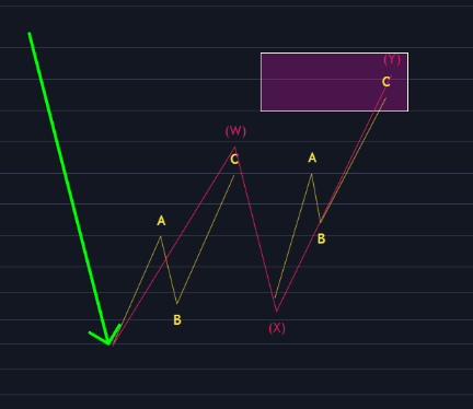 ②A-B-C波がもう1つ続いてW-X-Y波になる。
