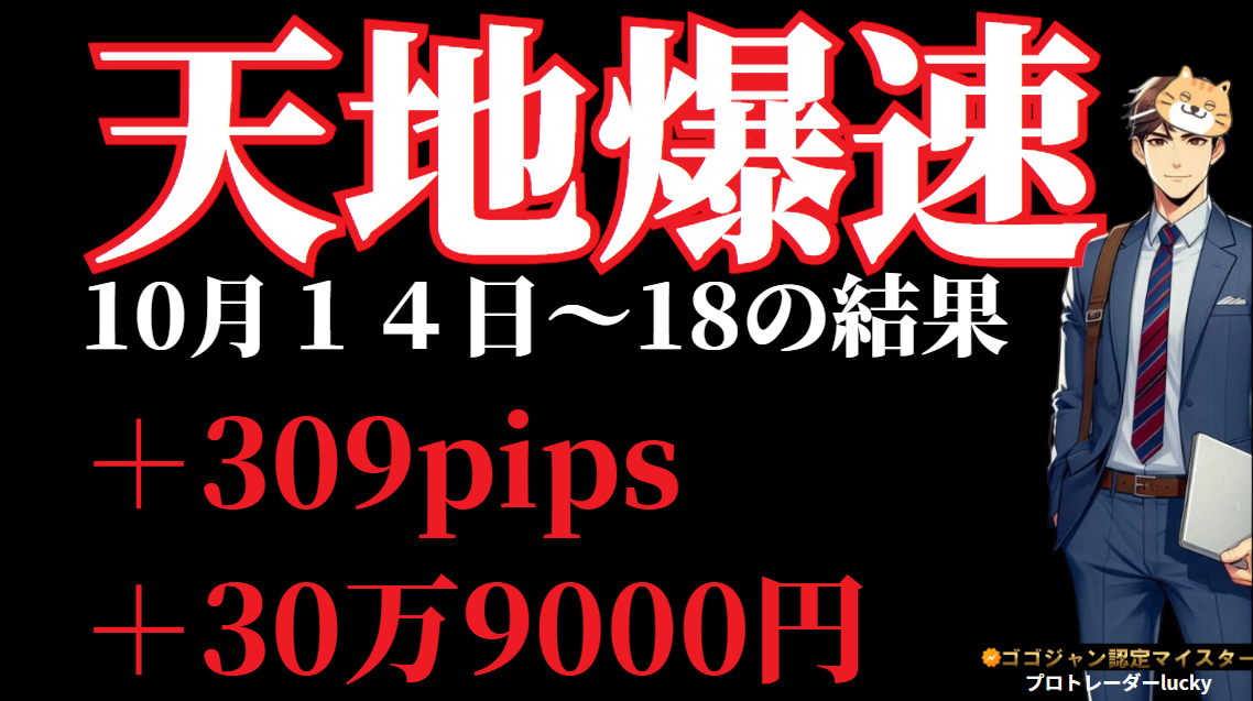 【破壊力抜群】天地爆速!10/14~18+309pips!+30万9000円】