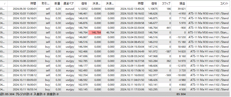 実際に『ATS-11 Ma』 を利用してトレードを行った実績をここで紹介していきます。