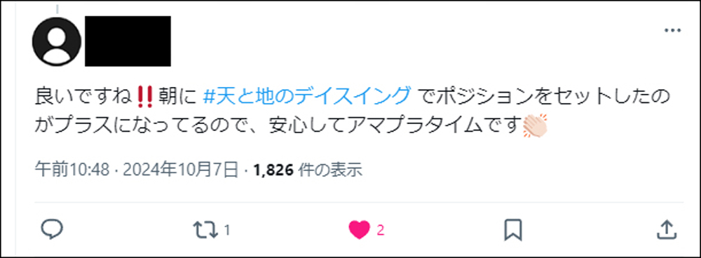 【日々更新中】実際に天と地のデイスイングを使用されたモニター様のポストをご紹介