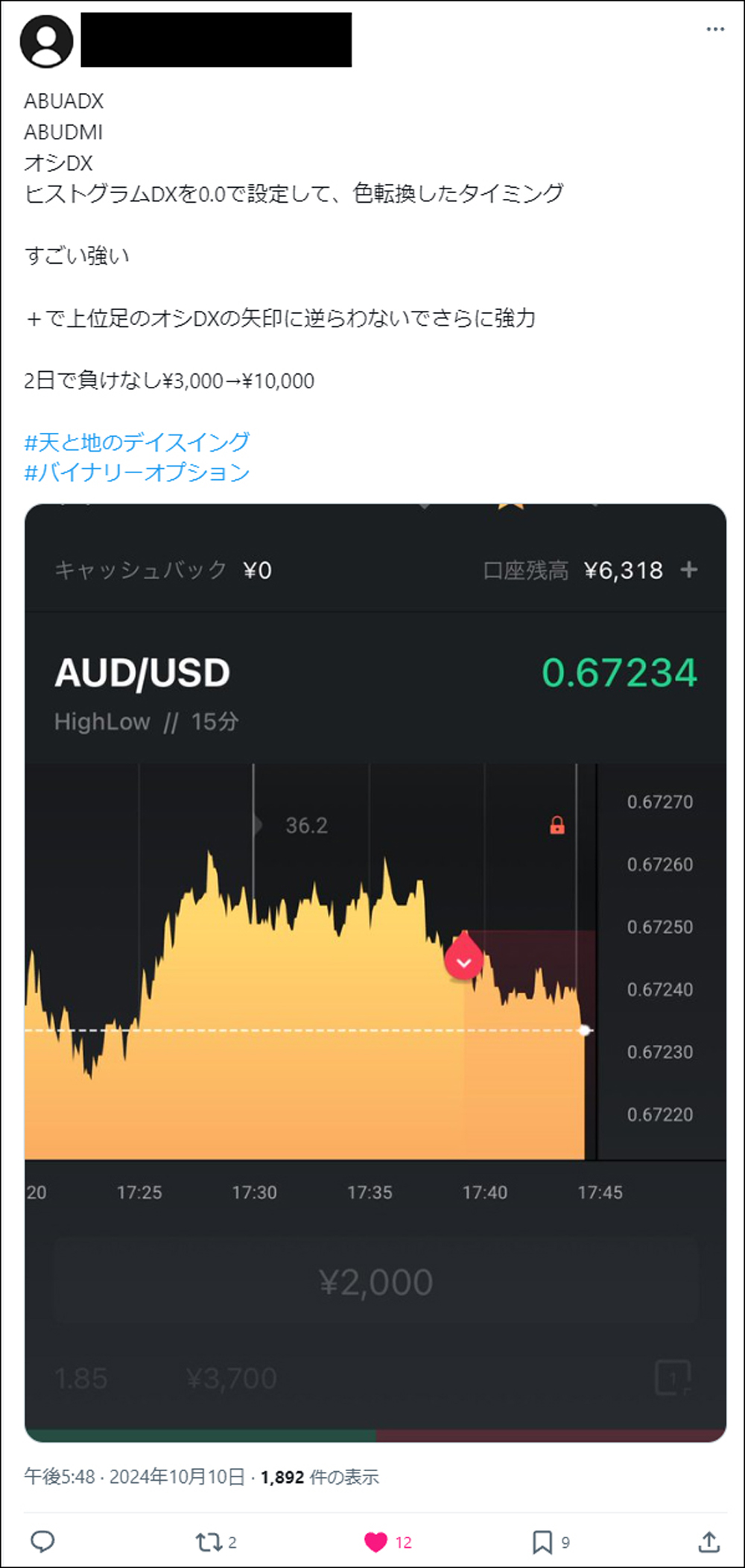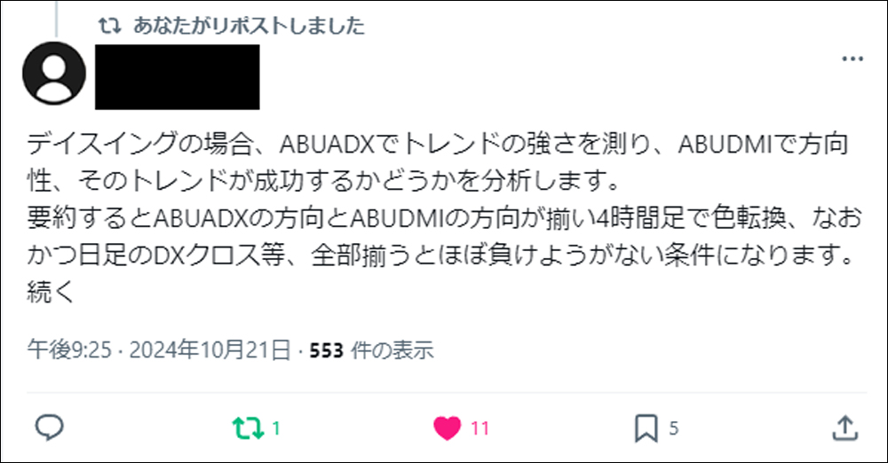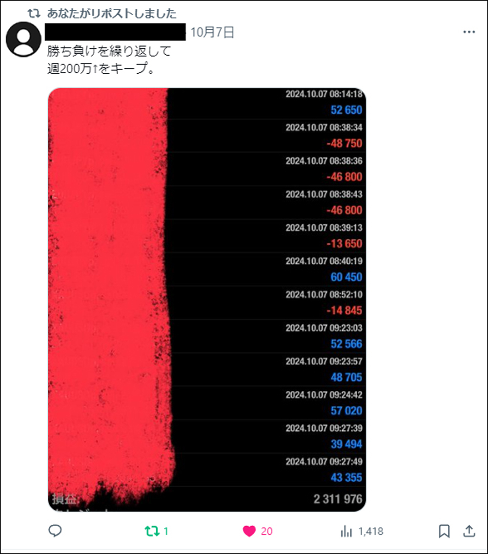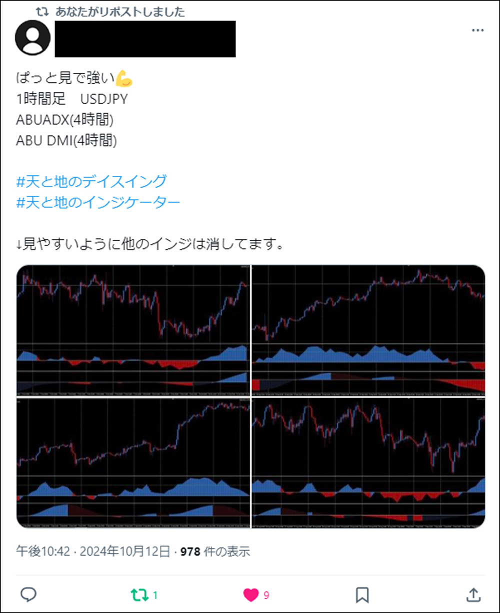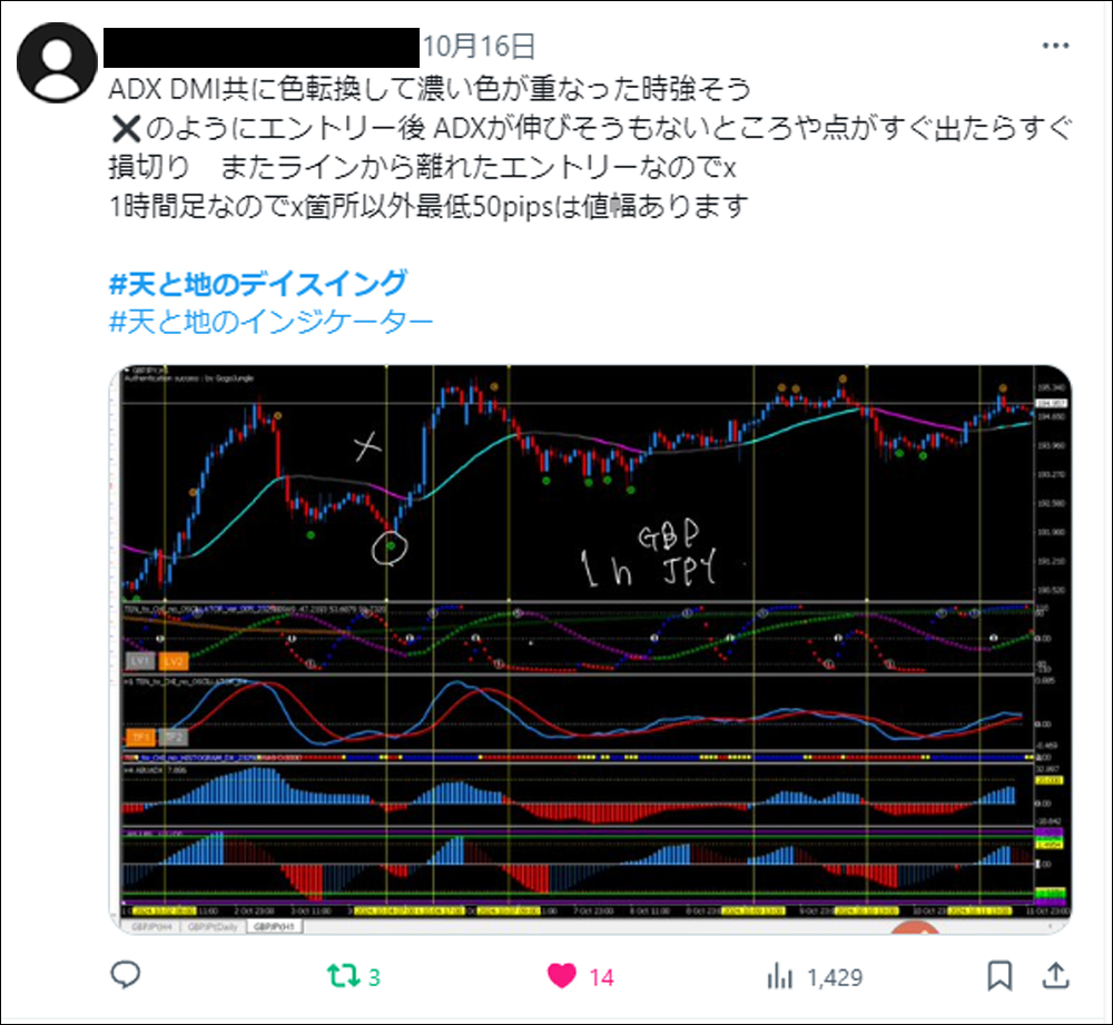 快く引き受けてくれた13名のモニター様には、2024年10月1日に天と地のデイスイングをお送りいたしました。それ以来、X(旧Twitter)でトレード履歴、使い心地、優位性など個々に感想をポストしてくれています。